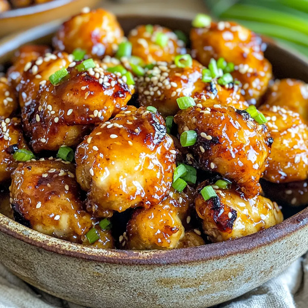Serve your honey garlic chicken bites with steamed broccoli or rice. Both sides complement the sweet and savory chicken. For presentation, place the chicken in a large bowl. Garnish with chopped green onions and sesame seeds. This makes the dish look even more appealing.