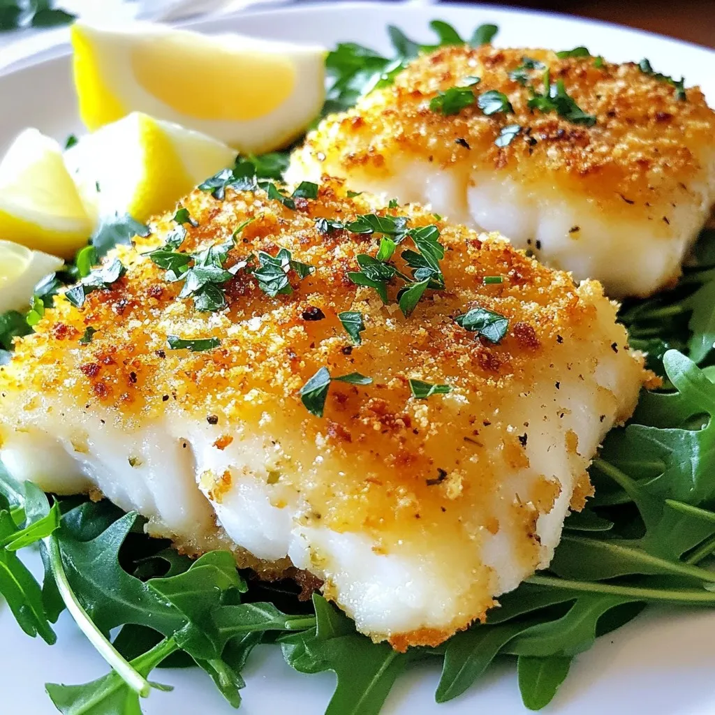 Dip each cod fillet first into the beaten egg, allowing any excess to drip off, then dredge it in the panko-Parmesan mixture, pressing gently to ensure the coating sticks well. Repeat for all fillets.