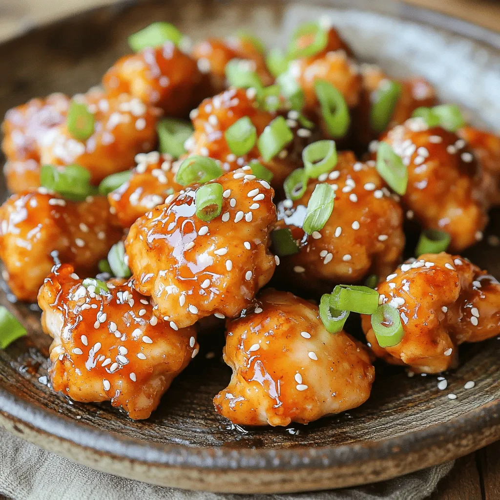 Serve your chicken bites with a side of rice or a fresh salad. They also pair well with crunchy vegetables like carrots and bell peppers. For a fun twist, use them in tacos or wraps. Drizzle with extra honey garlic sauce for added taste. Don’t forget to sprinkle extra sesame seeds and green onions on top for a nice presentation!