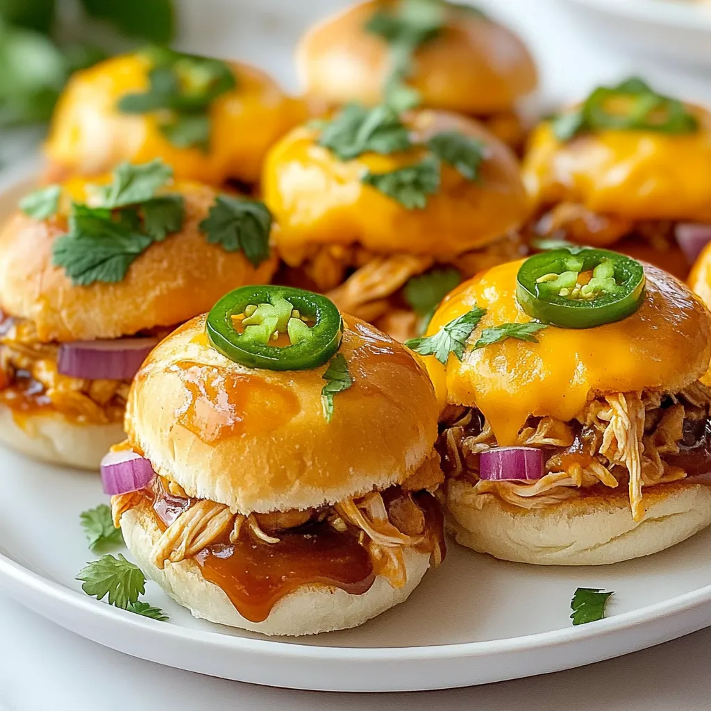 Delicious mini sliders filled with BBQ chicken, cheese, and jalapeños for a spicy twist.