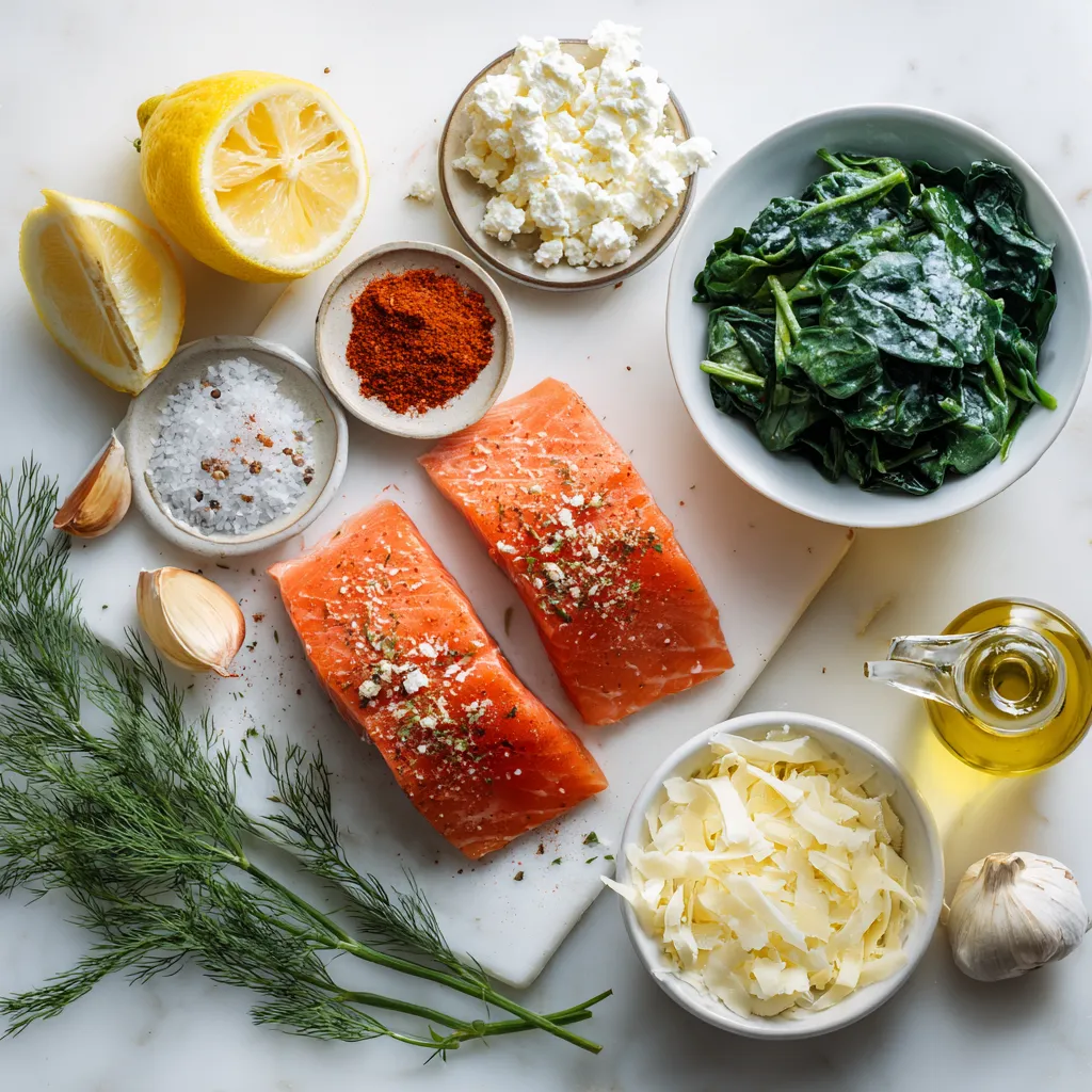 Each ingredient plays a key role. The salmon is rich and buttery. Spinach adds color and nutrition. Cream cheese brings creaminess. Feta and Parmesan add tang and saltiness. Herbs and spices create bold flavors.