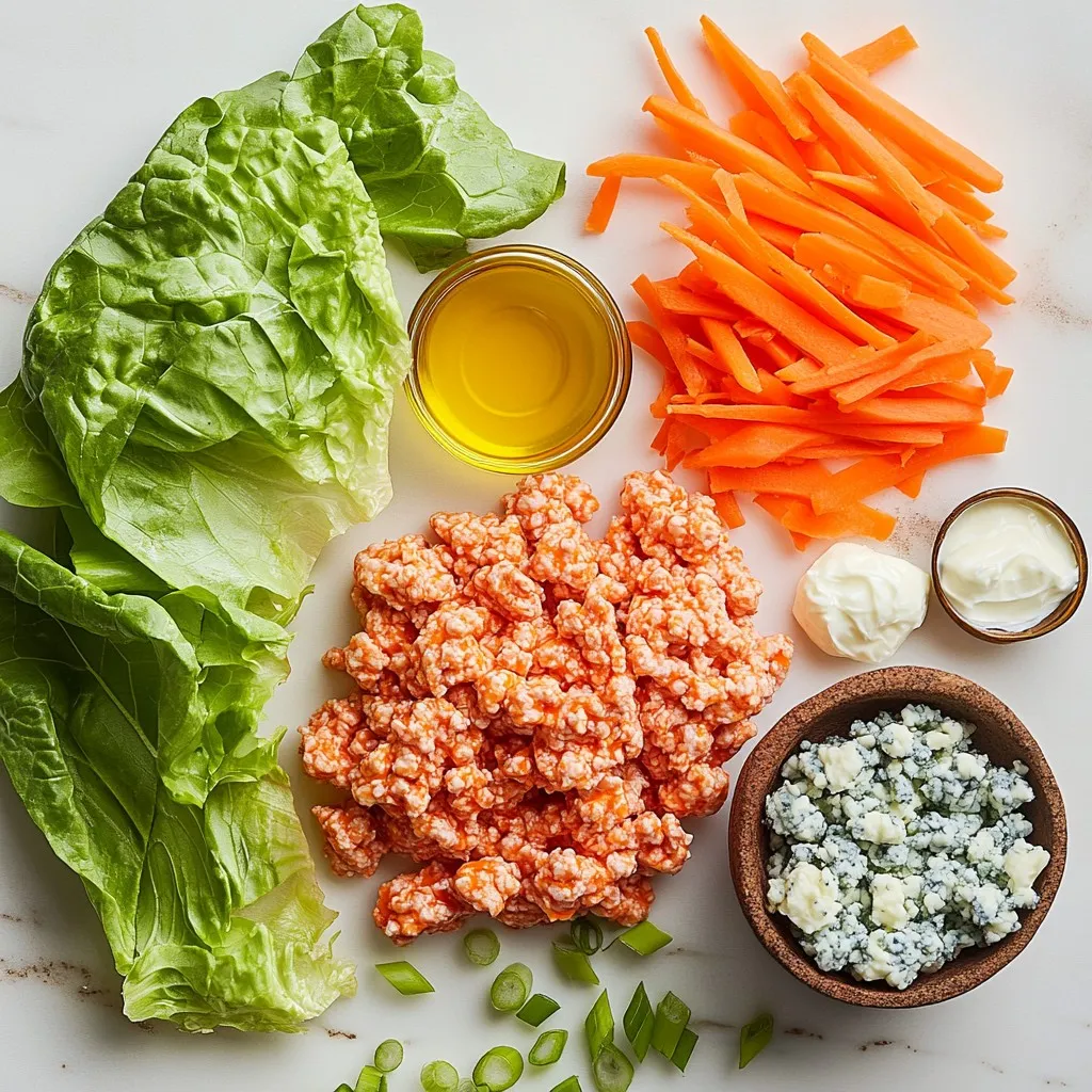 To make Buffalo Chicken Lettuce Wraps, you need a few simple ingredients. Here is the list: