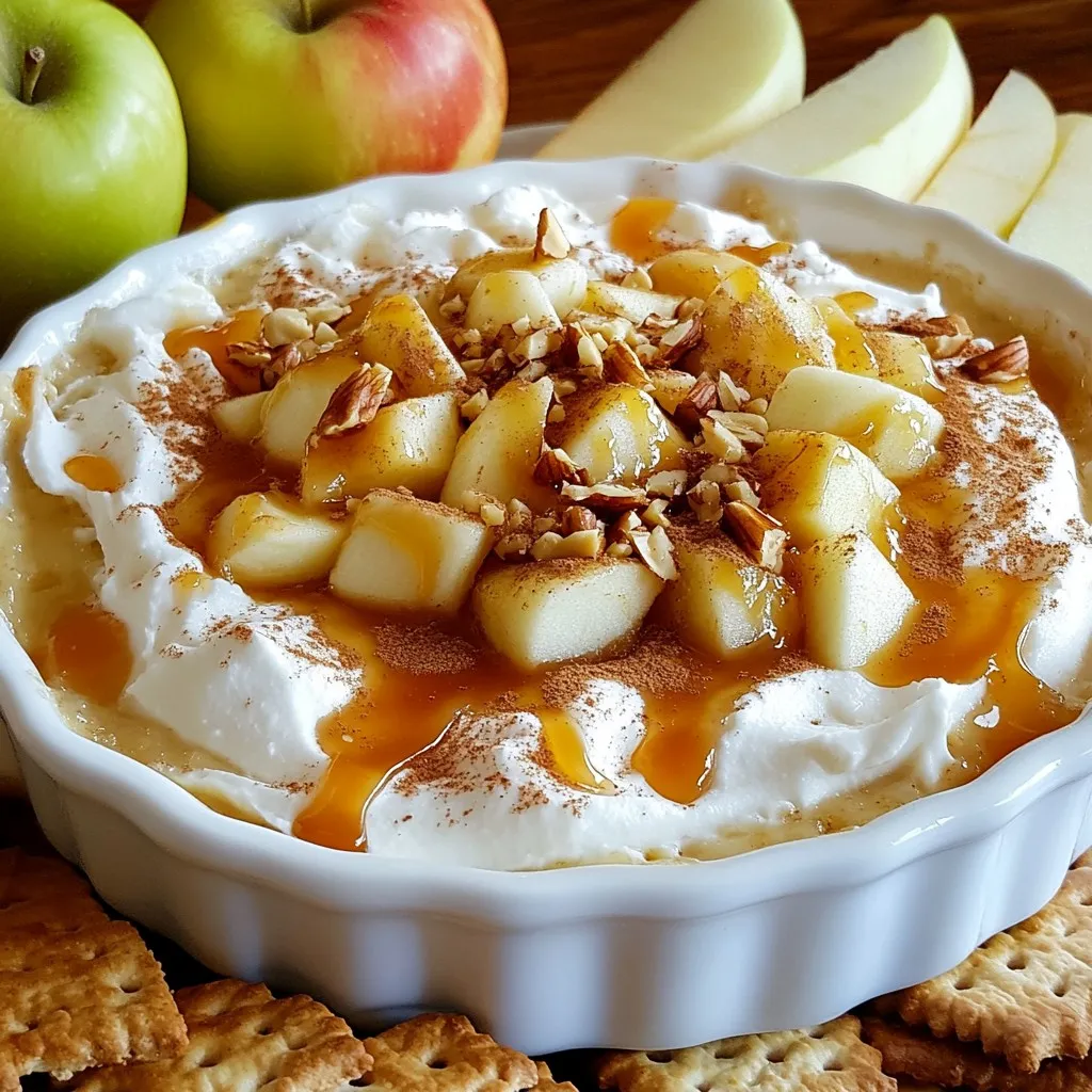 Serve the dip right away with apple slices and graham crackers. The crisp apples pair well with the creamy dip. You can also refrigerate the dip for a short time if you prefer it chilled. When presenting, place the dip in the center of a colorful platter. Add extra apple slices and graham crackers around it. This makes it look inviting and fun. Enjoy this treat at parties or family gatherings!