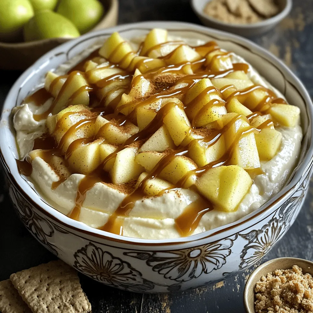 Sour cream brings a nice tang to the dip while keeping it creamy. For the apples, I prefer Granny Smith or Honeycrisp. Their crunch adds freshness and a pop of flavor. The caramel sauce gives a sweet, gooey contrast. I often drizzle extra caramel on top for a fun look.