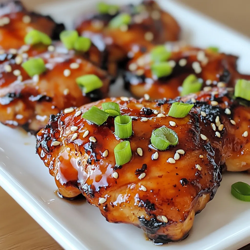 When you’re ready to cook, preheat your oven to 425°F (220°C). Line a baking sheet with aluminum foil. Place a wire rack on top of the foil. This helps the chicken cook evenly. Arrange the marinated chicken thighs on the rack. Let the extra marinade drip off. Bake the chicken for 25 to 30 minutes. It should be cooked through and look caramelized. Halfway through, baste the chicken with leftover marinade for extra taste. For a charred touch, broil the chicken for the last 2 to 3 minutes. Watch it closely to avoid burning. After cooking, let the chicken rest for a few minutes before slicing.