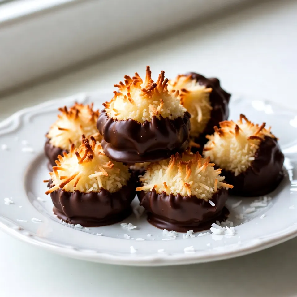 Chocolate coconut macaroons are sweet, chewy treats made with coconut and chocolate. They have a crispy exterior and a soft center. The main ingredients include shredded coconut, sweetened condensed milk, and chocolate. They are simple to make and perfect for any occasion.