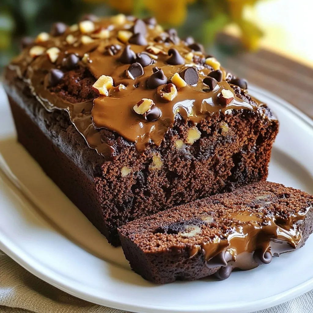 A deliciously moist banana bread infused with chocolate and peanut butter, perfect for breakfast or a snack.