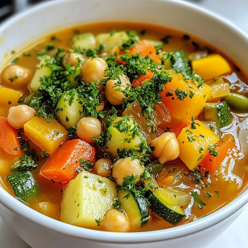 A comforting and nutritious vegetarian stew packed with seasonal vegetables and hearty chickpeas.