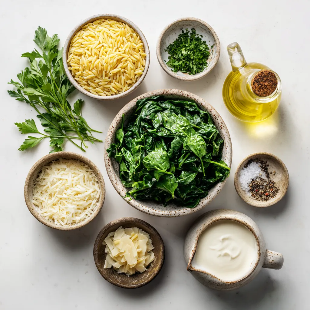 Each ingredient plays a key role. The orzo gives it a nice texture. Fresh spinach adds color and nutrients. Vegetable broth brings flavor and keeps it light. Heavy cream makes it rich and creamy. Grated Parmesan cheese adds depth and a savory taste. Garlic gives a lovely aroma. Olive oil helps everything blend together. Finally, season with salt and pepper to enhance all the flavors. Don’t forget the fresh parsley for a bright finish!