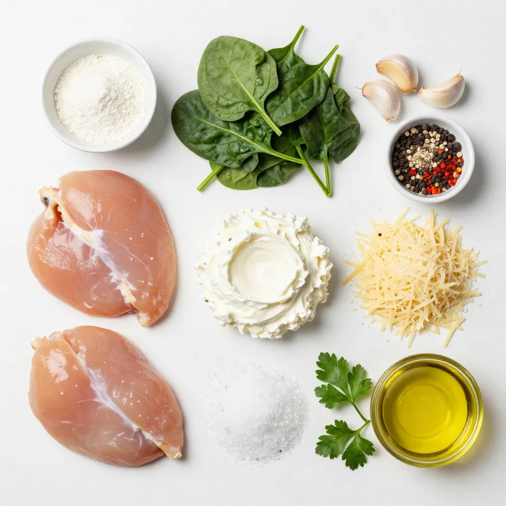 These ingredients come together to create a rich, creamy filling. The chicken breasts serve as the perfect vessel for the spinach and cheese mix. The garlic and spices really enhance the flavors.