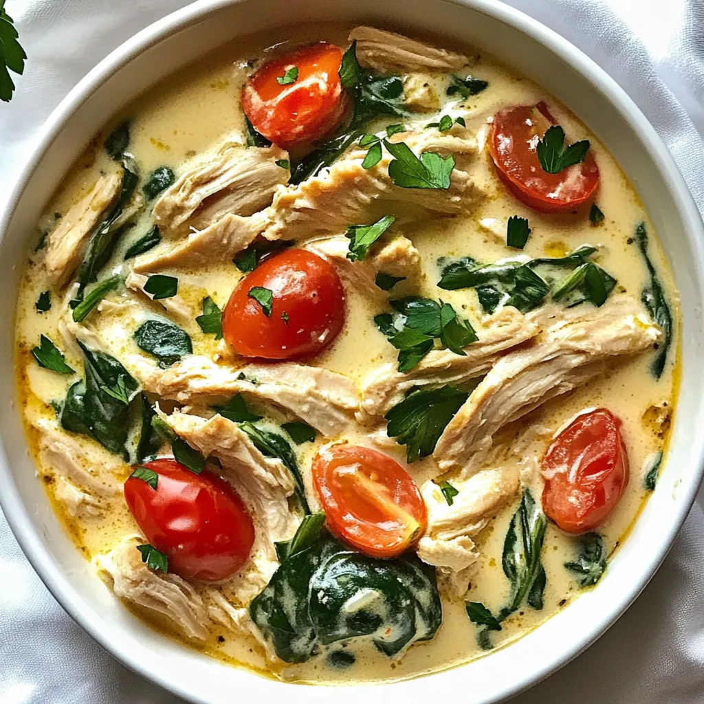 Once cooking is complete, shred the chicken right in the crockpot using two forks. Mix everything together to create a creamy texture. To serve, ladle the chicken into bowls. Garnish with fresh parsley if you like. This dish pairs great with rice or crusty bread to soak up the sauce. Enjoy your meal!