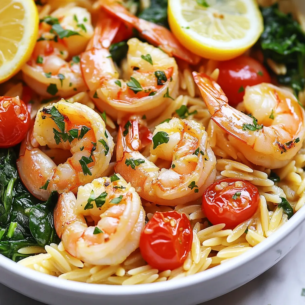 To make Garlic Butter Shrimp Orzo, you'll need the following: - 1 lb shrimp, peeled and deveined - 1 cup orzo pasta - 4 tablespoons unsalted butter - 4 cloves garlic, minced - 1 teaspoon red pepper flakes - 1 cup cherry tomatoes, halved - 2 cups spinach, roughly chopped - 1 cup vegetable broth - 1 lemon, juiced and zested - Salt and pepper to taste - Fresh parsley, chopped for garnish When cooking, using fresh ingredients makes a big difference. For the shrimp, choose large, firm ones. They should smell like the ocean and have a slight shine. Fresh garlic is key for great flavor, so pick bulbs that feel heavy and firm. For the cherry tomatoes, look for bright colors and a smooth surface. Spinach should be vibrant green without any wilting or browning. The lemon adds freshness, so using a juicy one is best. If you're missing any ingredients, don't worry! You can swap out the shrimp for chicken or scallops. If you want a vegetarian option, try using chickpeas instead. For pasta, you can use any small pasta shape like couscous or quinoa. If you can't find fresh spinach, frozen works too. Just thaw it and squeeze out the excess water before adding. Red pepper flakes can be replaced with paprika for a milder flavor. Lastly, if you want a richer taste, try adding a splash of white wine to the skillet with the broth. {{ingredient_image_1}} 1. Start by boiling water in a big pot. Cook the orzo according to the package. Check for al dente texture, then drain it and set it aside. 2. In a large skillet, melt the butter over medium heat. Once melted, add minced garlic and red pepper flakes. Sauté for about one minute until it smells great. 3. Now, add the shrimp to the skillet. Cook them for 2-3 minutes on each side. Look for them to turn pink and opaque. Season with salt and pepper. 4. Next, stir in the cherry tomatoes and spinach. Squeeze in the lemon juice and add the zest. Cook until the spinach wilts and tomatoes soften. 5. Pour in the vegetable broth and bring it to a gentle simmer. Let it bubble for about 3-4 minutes. 6. Add the cooked orzo into the skillet, mixing everything well. Cook for another 2 minutes to meld all those yummy flavors. 7. Finally, take it off the heat and add fresh parsley on top. Enjoy your meal! - Use fresh shrimp for the best flavor. They cook quickly. - Don't overcrowd the pan. Cook in batches if needed. - Keep an eye on the shrimp. They cook fast, about 2-3 minutes each side. - Look for that pink and opaque color. That means they are done and juicy. - If the shrimp seem overcooked, take them off the heat right away. They keep cooking even after you remove them. - If the dish feels too dry, add a bit more vegetable broth. This will help keep it moist. - For more spice, add extra red pepper flakes while cooking. Adjust to your taste. - If you want more flavor, consider adding herbs like thyme or basil. Mix them in when you add the spinach. To cook orzo pasta well, follow these steps: - Use a large pot with plenty of water. - Add a pinch of salt to the water before boiling. - Stir the orzo often to prevent sticking. - Cook until al dente, which means firm but not hard. - Drain the orzo well and set it aside. Cooking orzo this way gives it a nice texture. You want each piece to be tender but not mushy. To boost the flavor of Garlic Butter Shrimp Orzo, add a few spices or herbs. Here are some great options: - Fresh basil for a sweet touch. - Oregano for a warm, earthy flavor. - A dash of paprika for a smoky kick. - Lemon zest for extra brightness. Feel free to mix and match these options. They can change the dish completely. Just be careful not to overpower the garlic and shrimp. A beautiful presentation makes any meal more enjoyable. Here’s how to serve Garlic Butter Shrimp Orzo: - Use a large, shallow bowl for a nice spread. - Place the orzo in the center, then arrange shrimp on top. - Add a few halved cherry tomatoes for color. - Finish with a sprinkle of fresh parsley. Serving this way makes the dish look fancy and inviting. It’s perfect for impressing guests or simply treating yourself! Pro Tips Fresh Shrimp: For the best flavor and texture, use fresh shrimp rather than frozen. If you must use frozen shrimp, ensure they are fully thawed before cooking. Cook Orzo Perfectly: To prevent orzo from becoming mushy, cook it just until al dente, as it will continue to cook slightly when combined with other ingredients. Lemon Zest Boost: Don't skip the lemon zest! It adds a bright, fresh flavor that enhances the dish and balances the richness of the butter. Customize Your Greens: Feel free to substitute spinach with other greens like kale or arugula for a different flavor profile and added nutrients. {{image_2}} You can swap shrimp for many different proteins. Chicken is a great option. Use diced chicken breast and cook it until golden. If you prefer fish, try salmon or scallops. Both add rich flavors. For a lighter touch, use tofu or tempeh. These options soak up the tasty garlic butter sauce well. To create a vegetarian Garlic Butter Orzo, skip the shrimp. Use more veggies instead. Add mushrooms, zucchini, or bell peppers. Cook them until soft and mix them with the orzo. For protein, include chickpeas or white beans. They add a nice texture and keep you full. Feel free to mix up the vegetables. Broccoli or asparagus work well in this dish. You can also add peas for a pop of color. For the broth, try using chicken broth for extra flavor, or stay with vegetable broth for a lighter taste. Adjust the broth to your personal preference. To keep your Garlic Butter Shrimp Orzo fresh, store it in an airtight container. Make sure it cools down first. This helps to prevent steam from making it soggy. Place it in the fridge if you plan to eat it within three days. Label the container with the date, so you know when to use it. When you’re ready to enjoy your leftover Garlic Butter Shrimp Orzo, reheat it gently. Use a skillet over low heat for even warming. Add a splash of vegeta