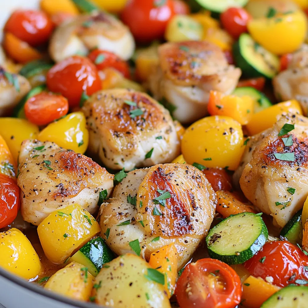 This blog post covered an easy chicken thigh recipe with vibrant veggies and herbs. I shared step-by-step cooking instructions and tips for perfecting the dish. You can even make tasty swaps for ingredients and adjust the recipe to fit your diet.
