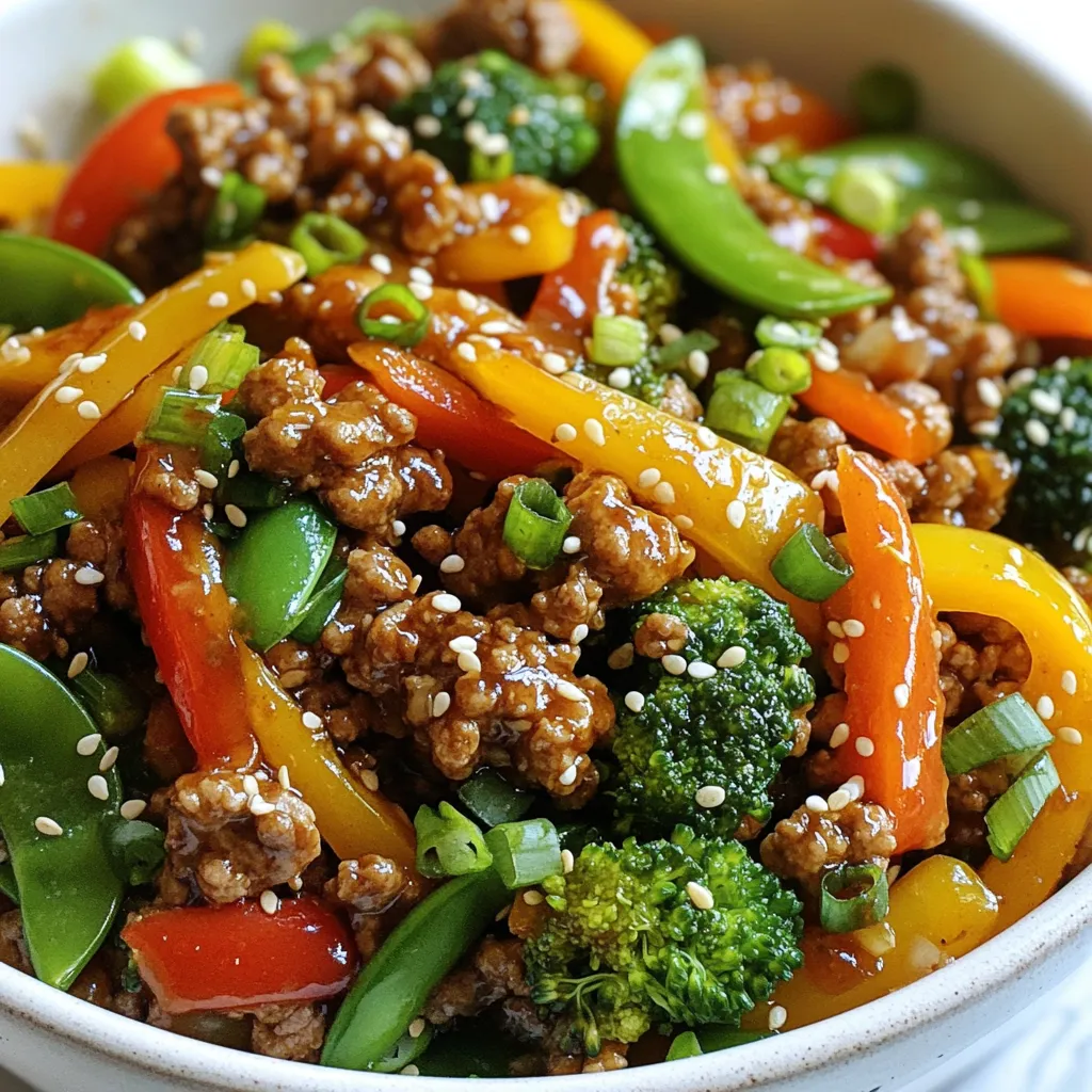 A quick and healthy stir fry featuring ground turkey and fresh vegetables in a savory teriyaki sauce.