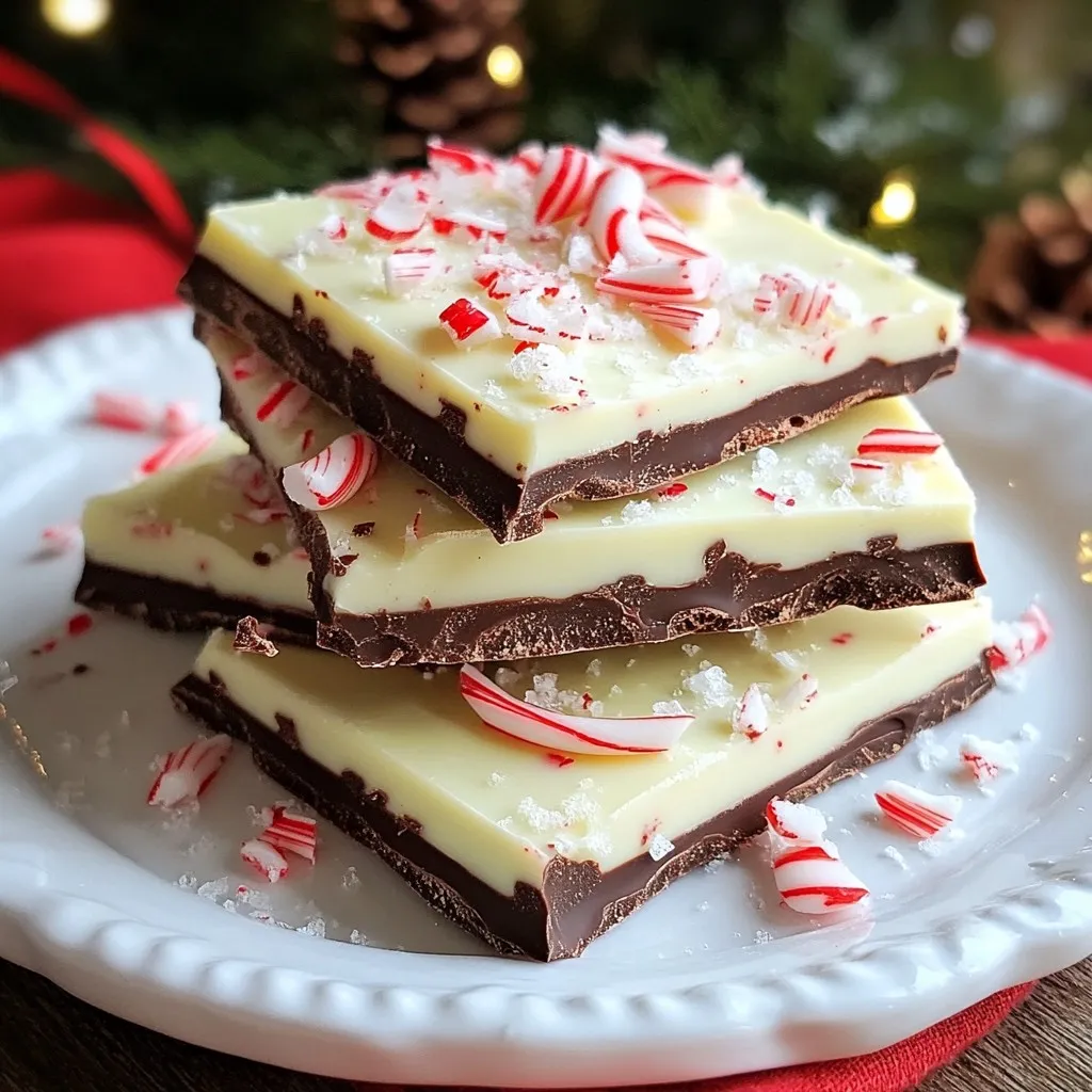 A festive treat combining dark and white chocolate with peppermint and candy canes.