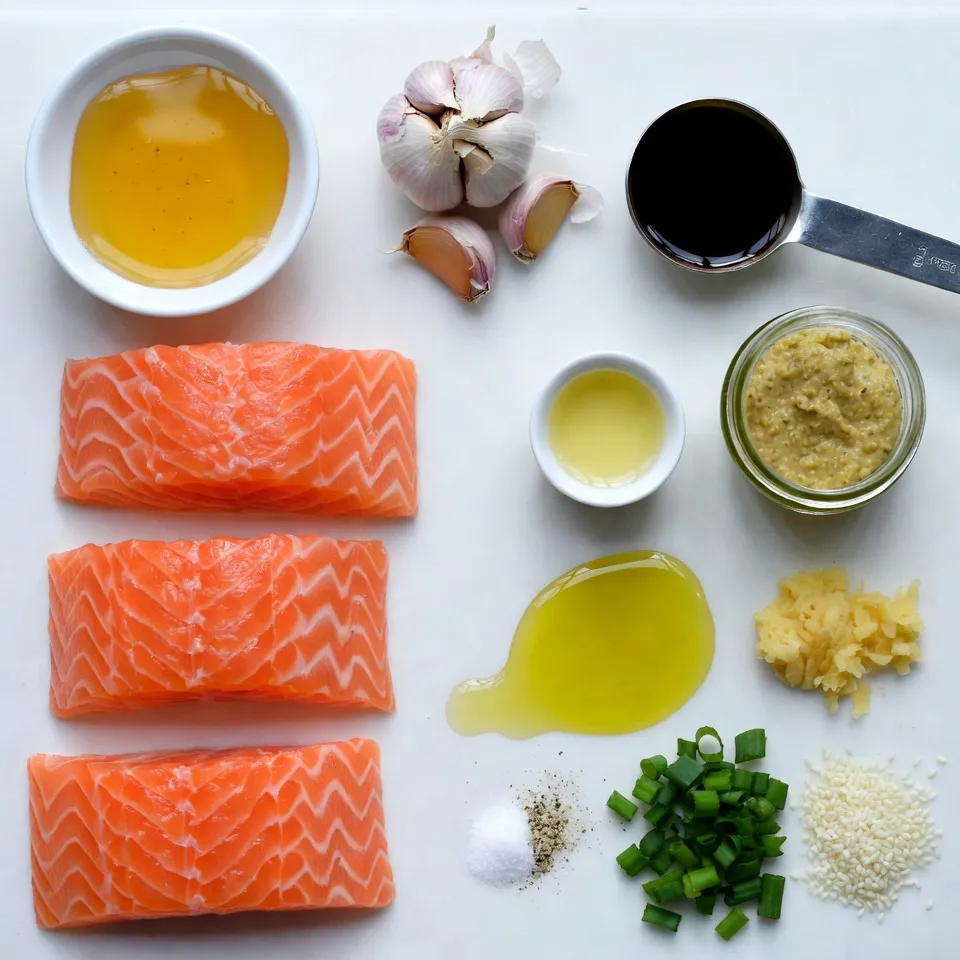 To make honey garlic glazed salmon, you need fresh ingredients. The salmon fillets are key for flavor and texture. Honey gives sweetness, while garlic adds depth. Soy sauce brings saltiness, and Dijon mustard adds a nice tang. Fresh ginger adds warmth and spice.