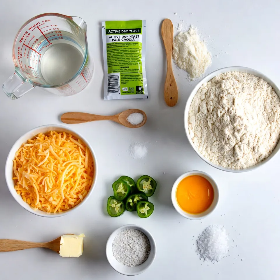 To make Jalapeño Cheddar Pretzel Bites, gather these key ingredients: