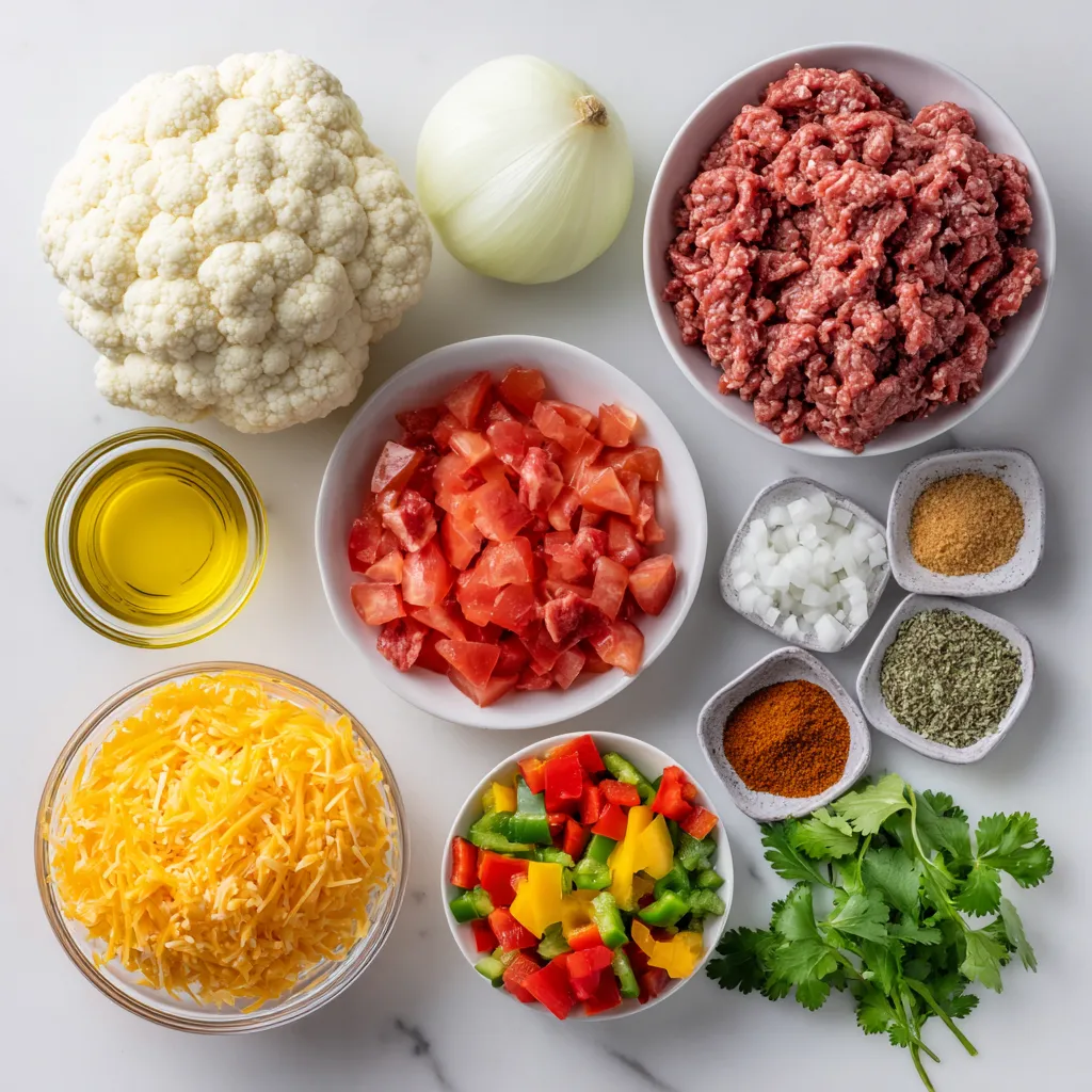 Let’s break down the ingredients you need for this Keto Mexican Beef Cauliflower Casserole.