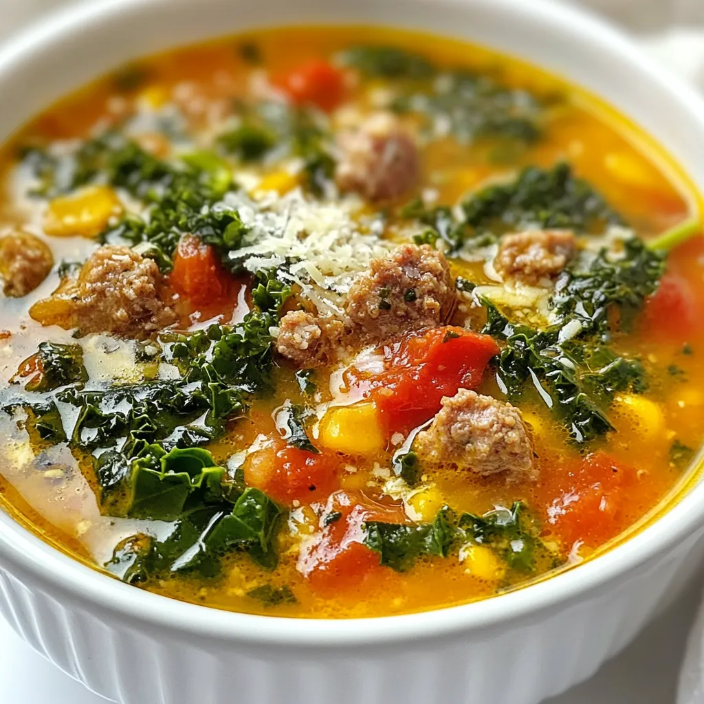 A creamy and hearty soup featuring Italian sausage, fresh greens, and rich flavors, perfect for a keto diet.
