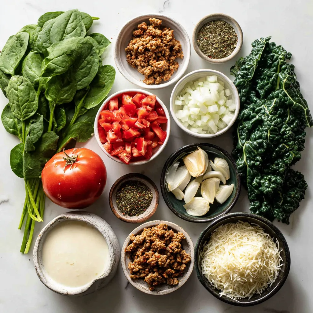 Keto Tuscan Soup is low in carbs and high in healthy fats. The main ingredients include Italian sausage, heavy cream, and fresh greens. These choices keep the carb count low. Instead of pasta or rice, we use vegetables like spinach and kale. This supports the low-carb approach of a keto diet.