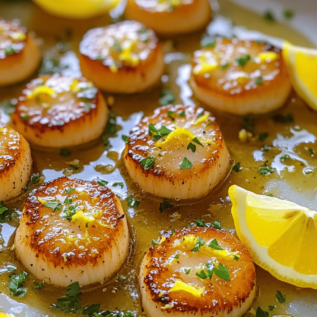 Serve your Lemon Garlic Butter Scallops with lemon wedges for a fresh kick. They pair well with light sides such as a green salad or roasted vegetables. A crisp white wine, like Sauvignon Blanc, complements the dish perfectly. For added flavor, serve with a side of garlic bread to soak up the sauce. Enjoy the dish while it’s warm for the best taste.