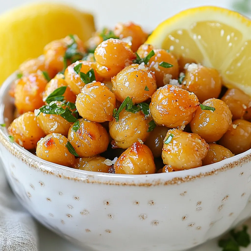 - 1 can (15 oz) chickpeas, drained and rinsed - 2 tablespoons olive oil - 1 tablespoon lemon juice - 2 cloves garlic, minced - 1 teaspoon lemon zest - 1 teaspoon smoked paprika - ½ teaspoon cumin - ½ teaspoon sea salt - ¼ teaspoon black pepper - Fresh parsley, chopped (for garnish) Lemon garlic roasted chickpeas are a great snack. They provide protein and fiber. Each serving has about 120 calories. They are low in fat and high in taste. Chickpeas help keep you full longer. The garlic adds flavor and health benefits. You can swap chickpeas for white beans if you want a change. Olive oil can be replaced with avocado oil. Lemon juice is also good with lime juice. Smoked paprika can be switched for regular paprika. If you like spicy, add cayenne pepper instead. Fresh parsley can be replaced with cilantro for a different touch. {{ingredient_image_1}} First, I preheat my oven to 400°F (200°C). This step makes sure the chickpeas roast nicely. Next, I take one can of chickpeas. I drain and rinse them under cold water. This removes any extra salt or canning liquid. After rinsing, I pat them dry with a clean kitchen towel. It’s important to get them dry to help them crisp up. I grab a mixing bowl and add the dry chickpeas. Then, I pour in 2 tablespoons of olive oil and 1 tablespoon of lemon juice. The olive oil helps the seasonings stick. I also add 2 cloves of minced garlic and 1 teaspoon of lemon zest. The zest gives a bright flavor. Next, I sprinkle in 1 teaspoon of smoked paprika, ½ teaspoon of cumin, ½ teaspoon of sea salt, and ¼ teaspoon of black pepper. I mix everything well to coat the chickpeas evenly with the seasonings. Now, I spread the seasoned chickpeas on a baking sheet lined with parchment paper. I make sure they are in a single layer for even roasting. I pop the baking sheet into the preheated oven and set a timer for 25-30 minutes. Halfway through, I shake the baking sheet to help them roast evenly. When they turn golden brown and crunchy, I take them out. After letting them cool for a few minutes, I taste them. If needed, I adjust the seasoning. Before serving, I garnish with fresh chopped parsley for a nice touch. To get that perfect crunch, start with dry chickpeas. Rinse them well, then pat them dry. Remove as much moisture as you can. This step is key. When you roast, spread them in a single layer. This helps them cook evenly. Shake the pan halfway through roasting to avoid sogginess. Roast until they are golden brown. Lemon garlic roasted chickpeas are tasty on their own. But you can enhance the flavor. Try adding some heat with cayenne pepper. A sprinkle of nutritional yeast gives a cheesy taste. You can also mix in different herbs. Consider using rosemary or thyme for a fresh twist. Experiment and find your favorite flavor combo! One common mistake is not drying the chickpeas enough. Wet chickpeas won’t get crispy. Another mistake is overcrowding the baking sheet. This leads to uneven cooking. Make sure to shake your baking sheet while roasting. Lastly, remember to adjust seasoning after roasting. Tastes can change as they cool! Pro Tips Dry Chickpeas Thoroughly: Make sure to pat the chickpeas dry before roasting. Removing excess moisture helps them achieve that perfect crunch. Adjust Seasoning to Taste: After roasting, taste the chickpeas and feel free to adjust the seasoning. A little extra salt or a sprinkle of cayenne can elevate the flavor! Experiment with Spices: Don’t hesitate to get creative with spices! Try adding curry powder, chili powder, or even nutritional yeast for a unique twist. Store for Freshness: If you have leftovers, store them in an airtight container at room temperature. They can lose crunchiness in the fridge. {{image_2}} You can change the spice mix to suit your taste. Try adding cayenne pepper for heat. You can also use garlic powder instead of fresh garlic. Italian herbs like oregano or basil work well too. For a sweeter option, try cinnamon or coconut sugar. Experimenting with spices can make each batch unique and tasty. This recipe is easy to adapt for different diets. For a gluten-free option, this dish is naturally gluten-free. You can also make it vegan by ensuring all ingredients are plant-based. If you want a low-sodium version, reduce the sea salt or use salt-free seasoning. These changes let everyone enjoy this tasty snack. Lemon garlic roasted chickpeas can be served in many ways. Enjoy them as a snack on their own. You can sprinkle them on salads for extra crunch and protein. They also make a great topping for soups. For a fun party treat, serve them in small bowls with dips. Pair them with hummus or yogurt for added flavor. To keep your lemon garlic roasted chickpeas fresh, store them in an airtight container. Make sure the container is sealed tightly to prevent moisture. You can use a glass jar or a plastic container. Avoid placing them in the fridge, as this can make them soggy. Instead, keep them at room temperature in a cool, dry place. If you want to enjoy your chickpeas warm again, preheat your oven to 350°F (175°C). Spread the chickpeas on a baking sheet. Heat them for about 10 minutes, or until they are warm. This will help restore their crunch. You can also use an air fryer for a quick reheating option. Lemon garlic roasted chickpeas can last up to five days when stored properly. After that, they might lose their crunch and flavor. If you see any signs of spoilage, like an off smell or mold, it's best to throw them away. Enjoy them while they are fresh for the best taste! Roasted chickpeas are packed with protein and fiber. They help keep you full longer. This makes them great for snacks. The spices add flavor without extra calories. Chickpeas are also rich in vitamins and minerals. They support heart health and aid digestion. Plus, they are low in fat, which is a bonus for healthy eating. Yes, you can use dried chickpeas! Just soak them overnight before cooking. After soaking, boil them until soft. This wil