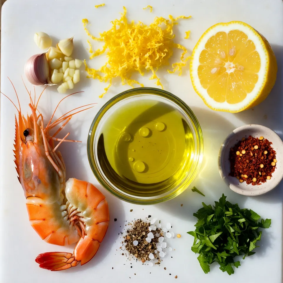 In a large bowl, mix the olive oil, minced garlic, lemon zest, lemon juice, red pepper flakes, salt, and pepper. Whisk it all together until it looks smooth. This marinade brings life to the shrimp.