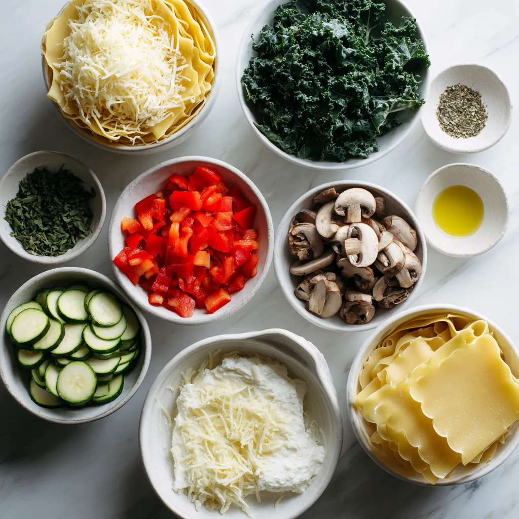 For a tasty Loaded Veggie White Lasagna, gather these main ingredients: