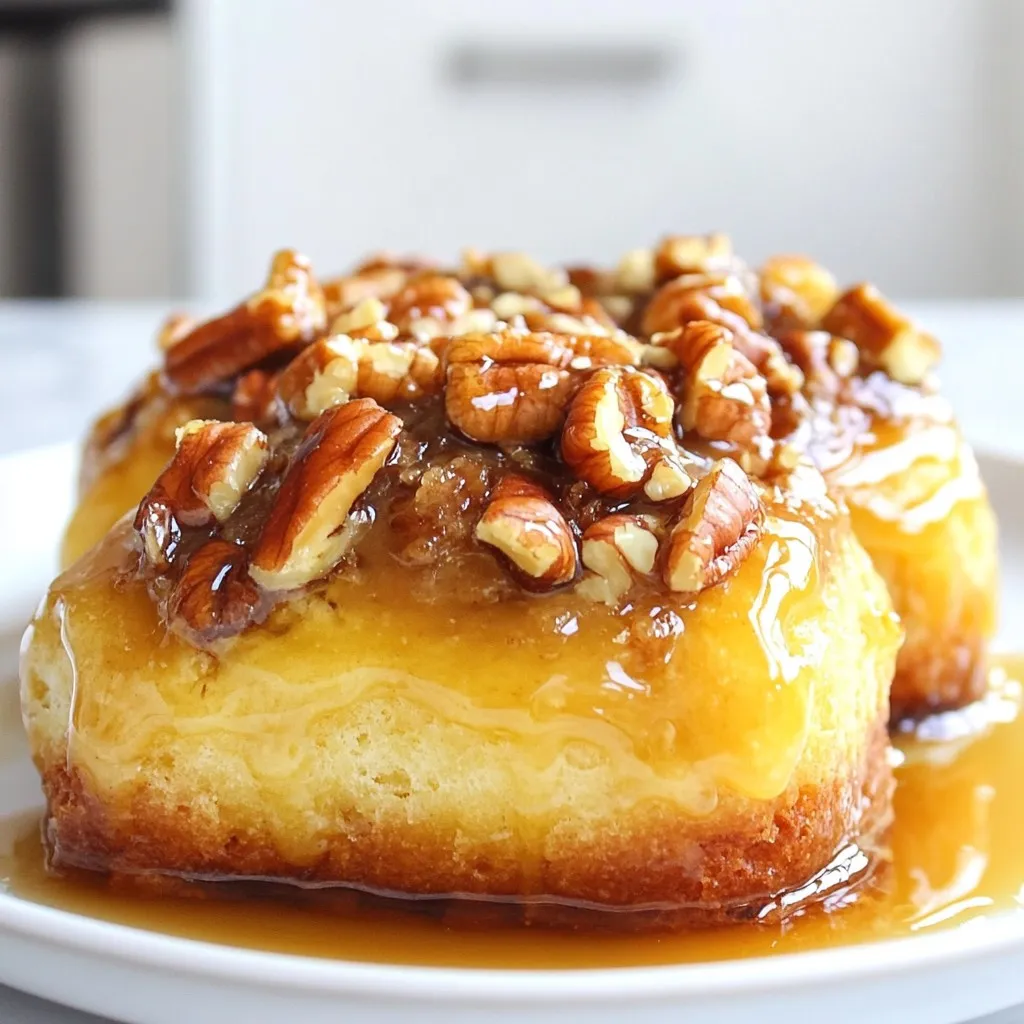 Once baked, let them cool in the pan for 10 minutes, then invert onto a serving platter to let the sticky syrup drizzle over the buns.