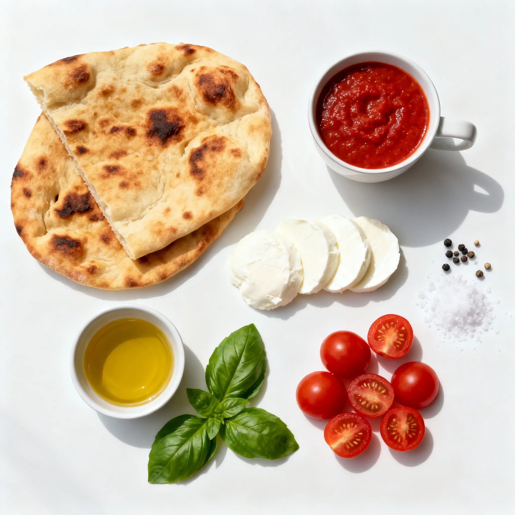 With these ingredients, you’re ready to create a fresh and tasty Margherita naan pizza.