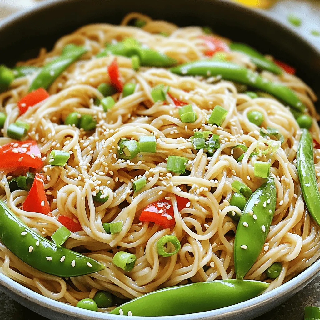 When stir-frying, make sure your pan or wok is hot before adding any oil. This helps prevent sticking. Add the vegetables in stages, starting with the ones that take longer to cook, like bell peppers. Stir them quickly to keep them crisp. After a couple of minutes, add the snap peas. Finally, add the noodles and sauce. Toss everything together gently. This ensures even coating and warm noodles. Enjoy the delicious flavors!
