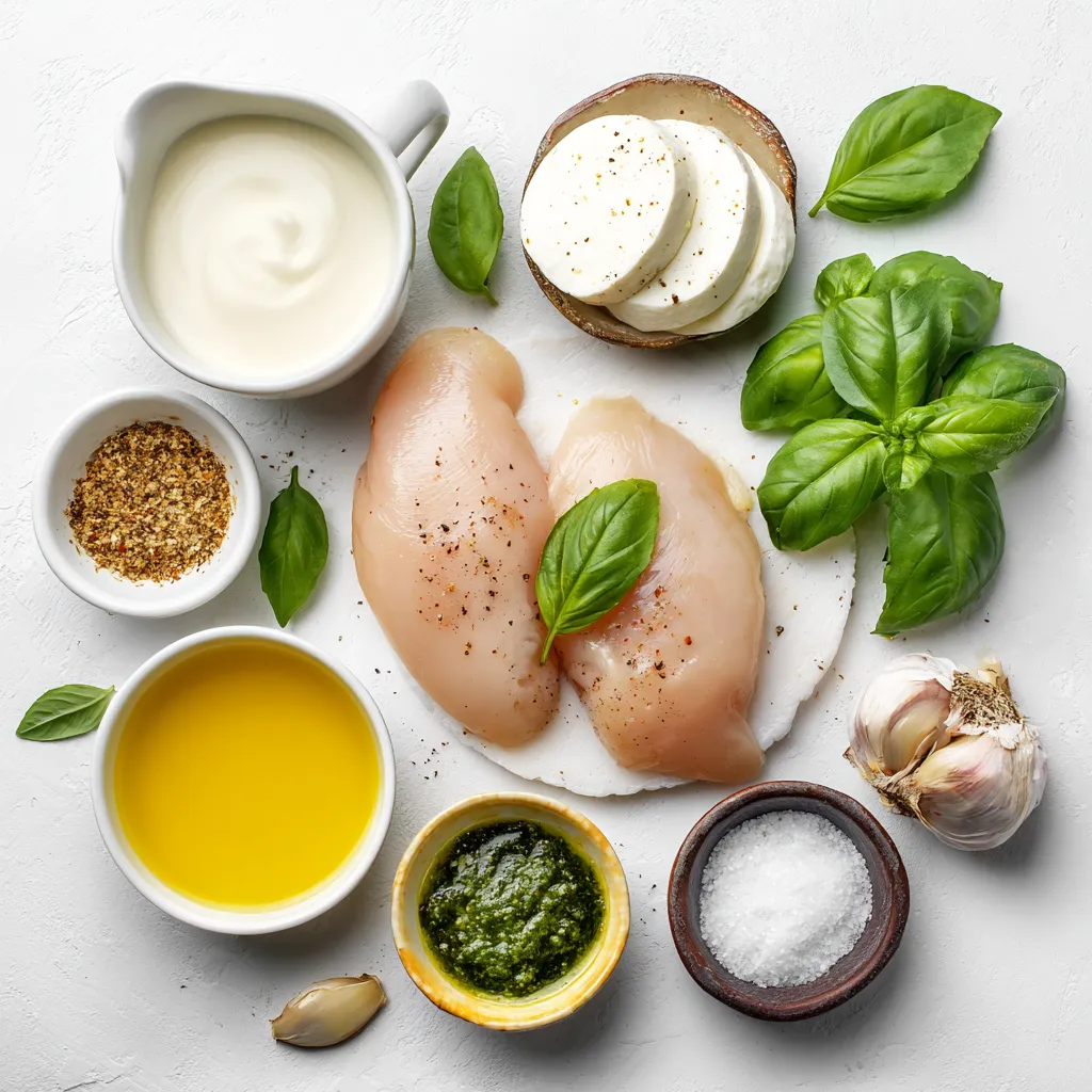 First, get all your ingredients ready. You need 4 boneless, skinless chicken breasts. Slice 1 cup of fresh mozzarella cheese. Measure 1 cup of heavy cream and 1/2 cup of chicken broth. Also, chop 1 cup of fresh basil leaves. Don’t forget to mince 1 garlic clove. Gather your salt, pepper, and 1 teaspoon of Italian seasoning.