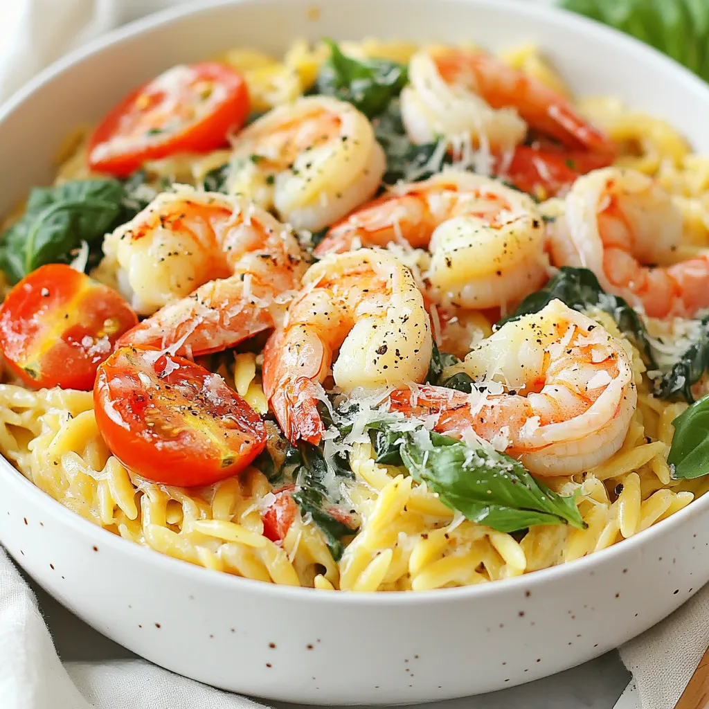 A delicious and creamy one-pot dish featuring shrimp, orzo pasta, and fresh vegetables.