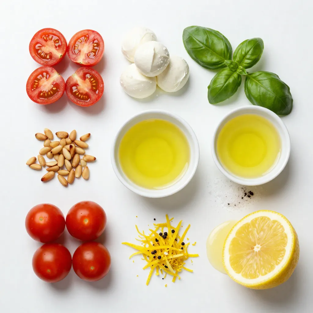 - 8 ounces pasta (fusilli or bowtie) - 1 cup cherry tomatoes, halved - 1 cup fresh mozzarella balls (bocconcini) - 1/4 cup pine nuts (toasted) - 1/3 cup extra-virgin olive oil - 2 cloves garlic, minced - 1/4 teaspoon salt - 1/4 teaspoon black pepper - Zest and juice of 1 lemon - Additional vegetables (like arugula or spinach) - Different types of cheese (like feta or parmesan) - Proteins (like grilled chicken or shrimp) When making Pesto Caprese Pasta Salad, the right ingredients matter. Start with your pasta. I love fusilli or bowtie pasta for this dish. They hold the pesto well and look great. You will need 8 ounces of pasta. Next, grab 1 cup of cherry tomatoes. Halve them for a pop of color and taste. Now, let’s add cheese! Use 1 cup of fresh mozzarella balls, also called bocconcini. They add a creamy texture to this dish. For a nutty crunch, include 1/4 cup of toasted pine nuts. Toasting them brings out their flavor. For the dressing, you need 1/3 cup of extra-virgin olive oil. This oil has a rich taste that elevates the salad. You will also need 2 cloves of minced garlic for a fresh kick. Season with 1/4 teaspoon salt and 1/4 teaspoon black pepper. For brightness, use the zest and juice of 1 lemon. It lifts the flavors and makes everything taste fresh. If you want to switch things up, try some optional add-ins. Toss in extra veggies like arugula or spinach for more greens. Different cheeses can change the flavor too. Feta or parmesan works well. You can also add proteins like grilled chicken or shrimp for a heartier salad. Each ingredient adds something special to your Pesto Caprese Pasta Salad! {{ingredient_image_1}} - Boil salted water in a large pot. - Add 8 ounces of pasta and cook until al dente. - Drain the pasta and rinse it under cold water. Cooking pasta is simple. Salting the water adds flavor. Al dente pasta has a firm bite, which is perfect for salads. Rinsing stops the cooking process and cools the pasta quickly. - In a food processor, combine 1 cup of fresh basil, 1/4 cup of toasted pine nuts, and 2 minced garlic cloves. - Add 1/3 cup of extra-virgin olive oil, 1/4 teaspoon of salt, 1/4 teaspoon of black pepper, the zest of 1 lemon, and 1 tablespoon of lemon juice. - Blend until smooth and adjust thickness as needed. Pesto is a star of this dish. The fresh basil gives it a bright flavor. Blending the ingredients creates a creamy texture. If your pesto is too thick, add a tablespoon of water. - In a large bowl, combine the cooked pasta, 1 cup of halved cherry tomatoes, and 1 cup of fresh mozzarella balls. - Pour in the prepared pesto and toss gently. Mixing the salad is fun. The colors and textures come together beautifully. Be gentle when tossing to keep the mozzarella intact. - Cover the bowl with plastic wrap and refrigerate for at least 30 minutes. - Serve the salad chilled or at room temperature. Chilling helps the flavors meld. It makes every bite full of taste. The salad looks great in a colorful bowl. You can garnish with extra pine nuts and basil for a lovely touch. To make great pesto, focus on the texture. If your pesto is too thick, add a tablespoon of water. Blend again until it reaches a smooth consistency. This keeps it easy to mix with your pasta. For a richer taste, toast your pine nuts. Place them in a dry pan over medium heat. Stir often to avoid burning. They should turn golden and smell nutty—this step makes a big difference! Garnish your salad with more fresh basil leaves. A sprinkle of extra pine nuts adds a nice crunch. You can also drizzle olive oil on top for shine. For sides, serve crusty bread or a light white wine. These pair well with the flavors in your dish. Make your Pesto Caprese Pasta Salad pop with color! Serve it in a large, bright bowl. For seasonal flair, use edible flowers or fresh herbs. You can even layer the salad in a clear dish. This way, the colors of the tomatoes and basil shine through. Pro Tips Use Fresh Ingredients: Always opt for the freshest basil and tomatoes you can find. This will enhance the flavors of your salad significantly. Customize Your Pesto: Feel free to experiment with different nuts like walnuts or almonds, or add a bit of Parmesan cheese to your pesto for an extra flavor boost. Make Ahead: This pasta salad can be made a day in advance. The flavors will deepen as it sits in the fridge, making it even more delicious! Serving Suggestions: Pair this salad with grilled chicken or shrimp for a complete meal or serve it as a side dish at your next gathering. {{image_2}} You can add protein to your Pesto Caprese Pasta Salad. Grilled chicken gives a nice boost. Shrimp is another tasty choice. Both options bring a hearty touch to the dish. For a vegetarian twist, try adding chickpeas. They pack protein and add a nice texture. You can simply toss them in with the pasta and veggies. To spice things up, think about adding red pepper flakes. They bring a kick that some may love. You can also try flavored oils like garlic or chili oil. These oils add a new layer to the salad’s taste. Just a drizzle can change the whole vibe of your dish. Using seasonal vegetables can enhance your salad. Fresh bell peppers or zucchini add a crunch. You can also mix in seasonal herbs like parsley or mint. They bring bright flavors and freshness. This way, your dish stays exciting and vibrant all year round. Store your Pesto Caprese Pasta Salad in the fridge at 40°F or lower. This keeps the salad fresh. It lasts up to three days when stored properly. Make sure to use an airtight container. This helps to avoid any unwanted odors. Freezing pasta salad is not ideal. It can make the pasta mushy when thawed. If you have leftovers, it is best to keep them in the fridge. For best taste, eat them within three days. If you must freeze it, separate the pesto and pasta. Freeze the pesto in ice cube trays for easy use later. To reheat, place the pasta in a pot on low heat. Stir gently until warmed through. Avoid high heat to keep the taste int