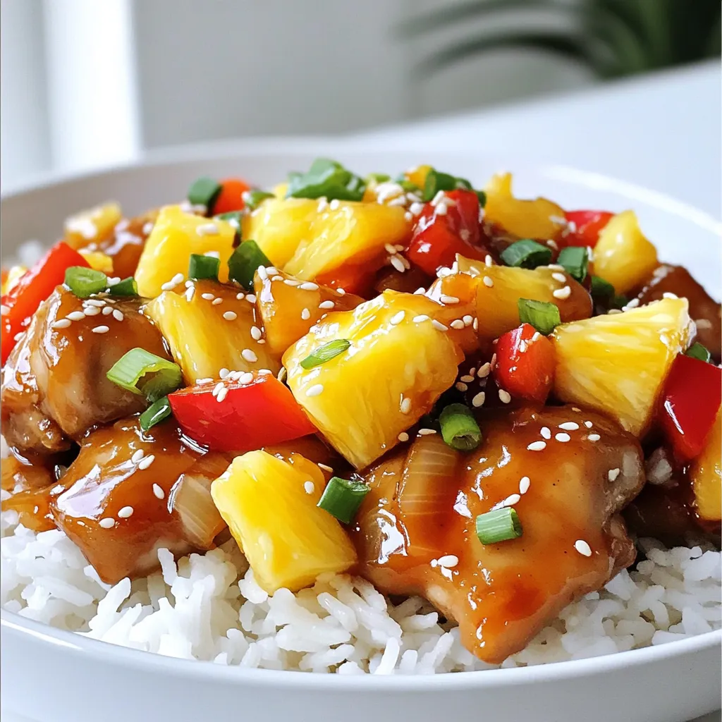 Serve Pineapple Chicken over a bed of fluffy rice. The rice soaks up all the tasty sauce. Top it with chopped green onions and sesame seeds for a bright finish. You can also pair it with a side of steamed broccoli or a fresh green salad. Enjoy your meal!