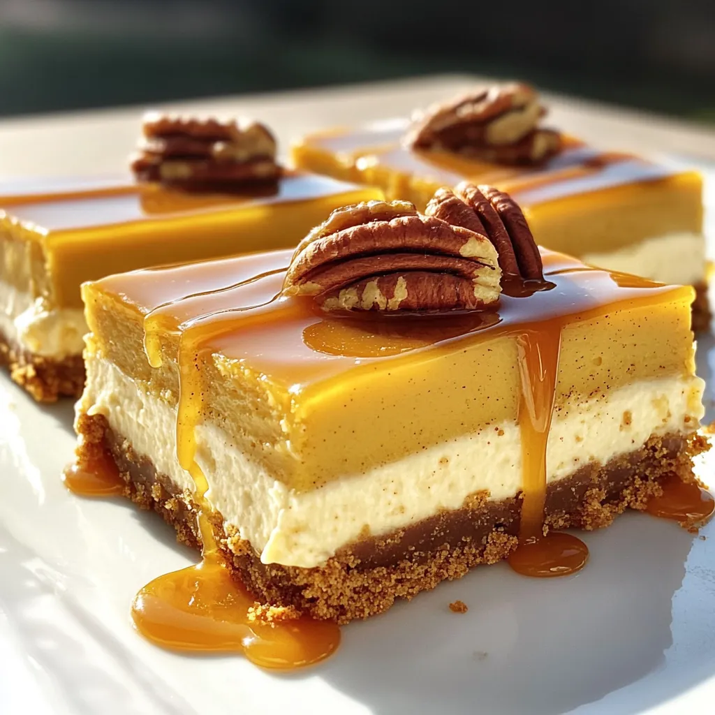 Pumpkin Cheesecake Bars Caramel Drizzle Delight