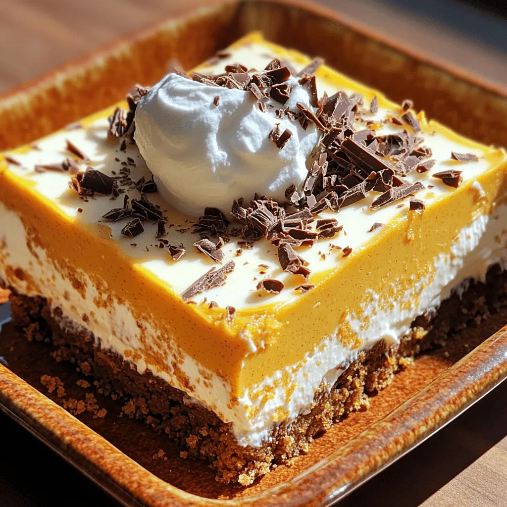 Serve this cake cold for the best taste. You can add a dollop of whipped cream on top for extra creaminess. Chocolate shavings also make a nice touch. They add a sweet crunch and look pretty. For a fun twist, try serving the cake with a scoop of vanilla ice cream. The mix of flavors and textures will impress your guests. Pair it with coffee or tea for a cozy dessert experience. Enjoy each bite of this delicious pumpkin cheesecake icebox cake!