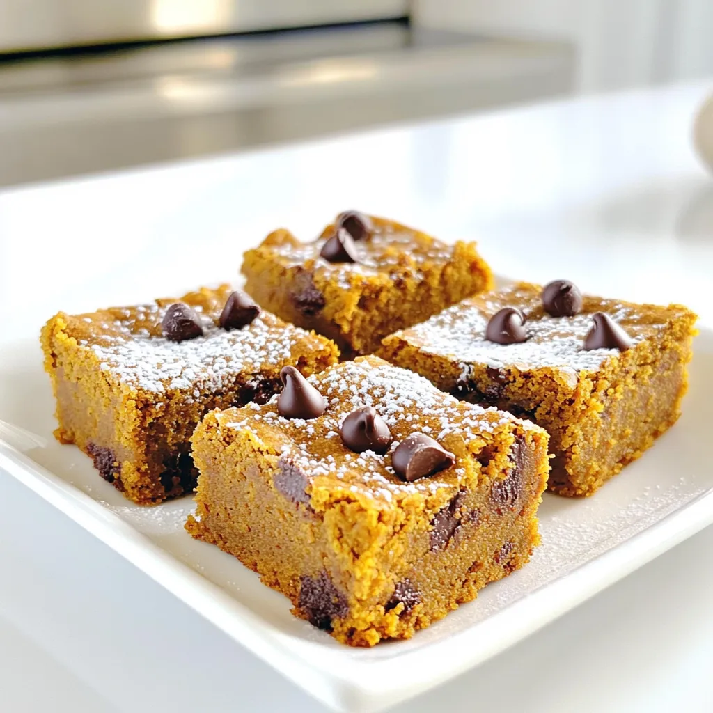 These blondies pair well with whipped cream or vanilla ice cream. A sprinkle of cinnamon adds warmth. You might also try a drizzle of caramel sauce. Each addition enhances the pumpkin flavor!