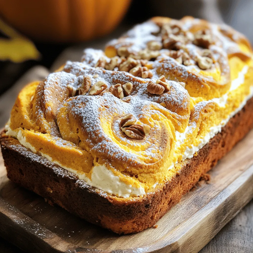 To create a lovely cream cheese swirl, mix the cream cheese with powdered sugar and milk. Make sure this mixture is smooth. Use a knife to gently swirl it into the pumpkin batter. Don’t overdo the swirling! You want to see ribbons, not a full mix. Take your time to spoon it in layers. This method gives you a beautiful look and taste.