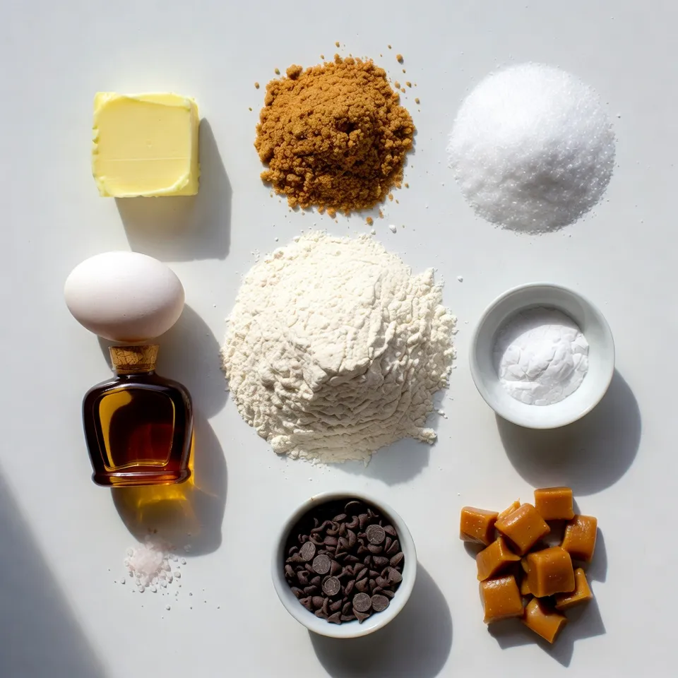 To make these salted caramel chocolate chip cookies, you’ll need a few key items. Here’s what you should gather: