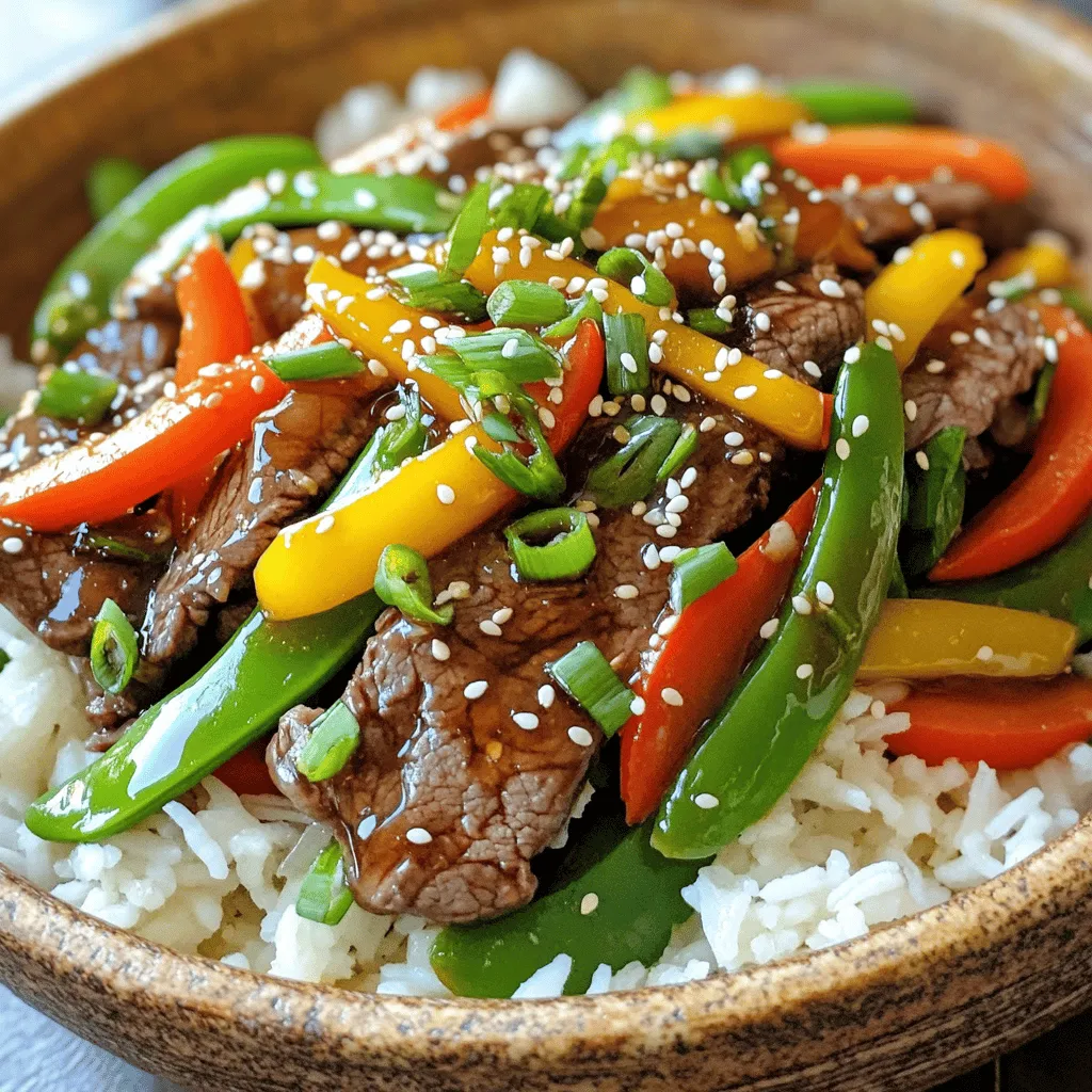 - Flank steak: This cut is great for stir fry. Slice it thinly against the grain. This helps keep it tender. - Vegetables: Use two bell peppers, red and yellow. They add color and sweetness. Add one cup of snap peas for crunch. One sliced carrot gives a nice texture. - Essential seasonings: Mix 1/4 cup of soy sauce for saltiness. Add 2 tablespoons of honey for sweetness. Use 1 tablespoon of rice vinegar for a tangy kick. - Types of oil: I recommend sesame oil. It adds a nutty flavor and aroma that makes this dish special. - Other necessary ingredients: Fresh ginger and garlic are key. Use 2 tablespoons of minced ginger and 3 minced garlic cloves for a fragrant boost. Add 1 teaspoon of cornstarch mixed with 1 tablespoon of water. This thickens the sauce nicely. - Serve your stir fry over jasmine rice or noodles. Both options soak up the sauce well. - For garnishes, sprinkle sesame seeds on top. Add chopped green onions for freshness and color. How do I slice flank steak properly? To slice flank steak, first, place it on a cutting board. Cut against the grain into thin pieces. Aim for slices about a quarter inch thick. This helps keep the meat tender. What is the searing technique for optimal flavor? Heat a large wok or skillet over medium-high heat. Add 1 tablespoon of sesame oil. Once the oil is hot, add the sliced beef in a single layer. Sear for 2-3 minutes without stirring. This browns the meat well. Flip and cook for an additional 1-2 minutes. Remove the beef and set it aside. What are the steps for sautéing ginger and garlic? In the same pan, add the remaining tablespoon of sesame oil. Add minced ginger and garlic. Sauté for about 30 seconds until fragrant. This step adds a strong flavor base. How long should I stir-fry the vegetables? Next, add julienned red and yellow bell peppers, snap peas, and carrots to the pan. Stir-fry for 3-4 minutes. The vegetables should be bright and just tender, retaining some crispness. How do I mix and coat ingredients with sauce? Return the beef to the pan with the vegetables. Pour soy sauce, honey, and rice vinegar over the mixture. Stir well to coat everything evenly. What tips can help achieve perfect sauce consistency? To thicken the sauce, pour in the cornstarch mixture. Stir until the sauce thickens, about 1-2 minutes. This gives your stir fry a glossy finish. Finally, add the white parts of green onions and stir once more. High heat is key for stir-frying. This method helps to lock in flavors and keeps the beef tender. When you heat your wok or skillet, let it get hot before adding oil. This helps create a nice sear on the meat. To avoid overcooking the beef, slice it thinly against the grain. This means cutting across the muscle fibers. Sear the beef in one layer, without moving it for the first few minutes. This way, it browns well and stays juicy. For extra flavor, consider adding a splash of chili sauce or a dash of sesame seeds while cooking. Fresh ginger and garlic bring bright flavors, while dried spices can add depth. Fresh herbs like cilantro or basil can also enhance your dish. Using fresh ingredients makes a big difference. Fresh ginger has a strong flavor compared to dried. Always choose bright, colorful veggies for the best taste and nutrition. Plating is important. Serve the stir fry over a bed of fluffy jasmine rice or noodles. This creates a nice base. For a pop of color, sprinkle sesame seeds on top. Garnish with the green parts of the green onions. You can also add slices of red chili for a spicy touch. Use a rustic bowl for a cozy feel, or a flat plate for a modern look. {{image_2}} You can switch the beef for other proteins. Chicken, tofu, or shrimp work great. - Chicken: Use boneless, skinless chicken breasts or thighs. Cook until golden brown. - Tofu: Choose firm tofu. Press it first to remove water. Cook until crispy. - Shrimp: Use peeled and deveined shrimp. They cook fast, so add them last. Adjust cooking times as follows: - Chicken takes about 5-7 minutes. - Tofu needs around 4-5 minutes. - Shrimp cooks in about 2-3 minutes. Feel free to mix in seasonal veggies. This keeps your stir fry fresh and fun. - Broccoli: Add small florets for crunch. - Zucchini: Slice it thin for a light taste. - Mushrooms: Use shiitake or button mushrooms for a rich flavor. For vegetarians, skip the meat and load up on veggies. You can add extra tofu or even tempeh for protein. Change the sauce to explore new flavors. You can adjust the taste to fit your mood. - Spicy: Add red pepper flakes or sriracha for heat. - Sweet: Use maple syrup instead of honey for a different sweetness. - Savory: Try adding hoisin sauce for a deeper flavor. These variations keep your sesame ginger beef stir fry exciting! To store your sesame ginger beef stir fry, first let it cool. Place it in an airtight container. This helps keep it fresh. Refrigerate it within two hours of cooking. Your stir fry will last for about three to four days. To keep flavor and texture, separate the sauce from the beef and veggies if possible. This way, the vegetables stay crisp and the beef remains tender. When it’s time to enjoy your leftovers, use gentle heat. The best methods are the stove or microwave. If using the stove, warm it in a skillet over low heat. Stir it often to heat evenly. This helps keep the beef moist and the veggies crisp. For the microwave, use a microwave-safe dish. Heat for about one minute, then stir. Check if it's heated through. Add a splash of water or soy sauce to keep it juicy. You can freeze sesame ginger beef stir fry if you need to store it longer. Pack it in a freezer-safe container. Be sure to leave some space at the top, as it may expand. It’s best to freeze it without the rice or noodles. This helps keep the texture nice. To thaw, place it in the fridge overnight. For reheating, use the stove or microwave as mentioned. Make sure it’s heated fully before serving. You can easily make this dish gluten-free by swapping soy sauce. Use tamari sauc
