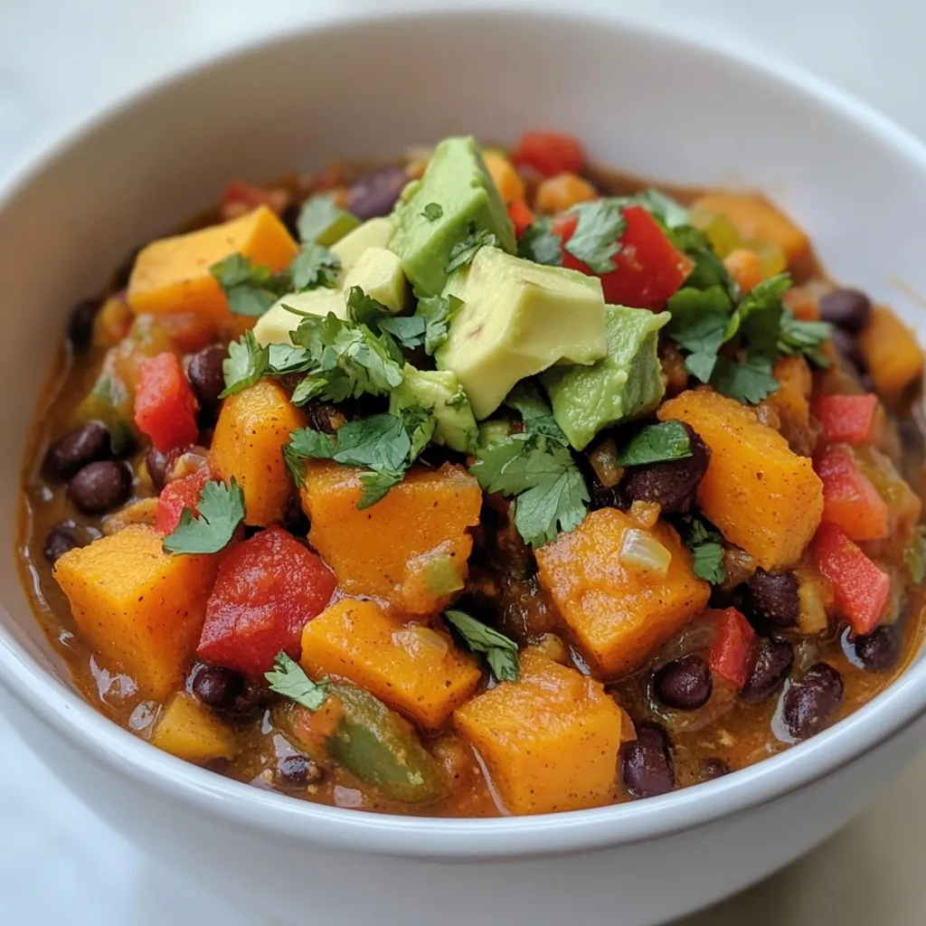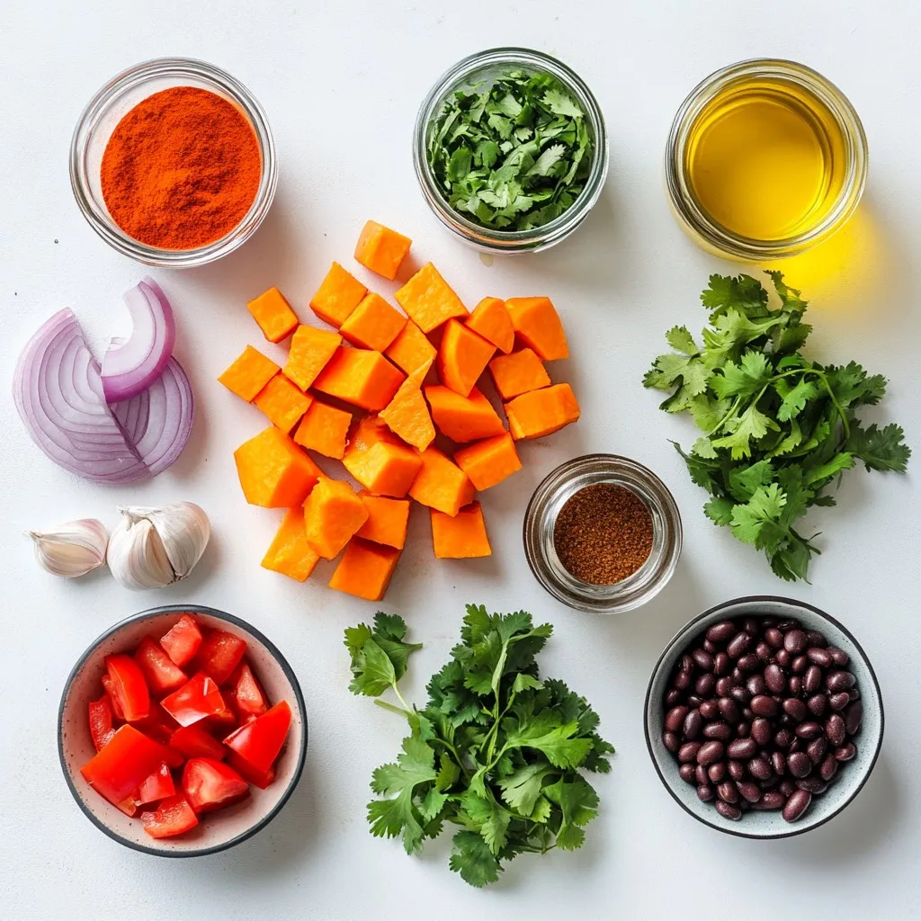 - 2 medium sweet potatoes, peeled and diced - 1 can (15 oz) black beans, drained and rinsed - 1 medium red onion, chopped - 2 cloves garlic, minced - 1 red bell pepper, chopped - 1 can (15 oz) diced tomatoes with green chilies - 1 cup vegetable broth - 2 teaspoons ground cumin - 1 teaspoon chili powder - ½ teaspoon smoked paprika - 1 tablespoon olive oil - Salt and pepper to taste - Fresh cilantro for garnish - 1 avocado, diced (for topping) You can swap sweet potatoes with butternut squash if needed. For a bean substitute, try chickpeas. Use onion powder instead of fresh onion if you prefer. Each serving has about 300 calories. It provides 12 grams of protein and 10 grams of fiber. You also get vitamins A and C from sweet potatoes and peppers. The black beans add iron and potassium. This chili is both vegetarian and vegan. It contains no animal products. To keep it gluten-free, ensure your broth is gluten-free. All the ingredients are naturally gluten-free, making this chili a safe choice for those with gluten sensitivities. {{ingredient_image_1}} To start, gather all your ingredients. You will need: - 2 medium sweet potatoes, peeled and diced - 1 can (15 oz) black beans, drained and rinsed - 1 medium red onion, chopped - 2 cloves garlic, minced - 1 red bell pepper, chopped - 1 can (15 oz) diced tomatoes with green chilies - 1 cup vegetable broth - 2 teaspoons ground cumin - 1 teaspoon chili powder - ½ teaspoon smoked paprika - 1 tablespoon olive oil - Salt and pepper to taste - Fresh cilantro for garnish - 1 avocado, diced (for topping) Chop the sweet potatoes into small cubes. This helps them cook evenly. Dice the onion and bell pepper into small pieces. Mince the garlic finely, as this enhances its flavor. Preparing ingredients is key. It saves time while cooking and helps with even cooking. When everything is ready, you can focus on cooking without interruptions. Now, let’s move to cooking! 1. Heat the olive oil in a large pot over medium heat. 2. Add the chopped onion and red bell pepper. Sauté for about 5 minutes until they soften. 3. Then, add minced garlic, ground cumin, chili powder, and smoked paprika. Stir and cook for another 1-2 minutes. You want the spices to bloom and fill your kitchen with aroma. Next, stir in the diced sweet potatoes, the diced tomatoes with their juices, the black beans, and the vegetable broth. 4. Bring this mix to a boil. Once it boils, reduce the heat to low. Cover the pot and simmer for 25-30 minutes. You want the sweet potatoes to be tender. Keep an eye on the temperature. If the chili gets too thick, add more vegetable broth. Stir occasionally to prevent sticking. After cooking, let it sit for a few minutes. This helps the flavors meld together. Now for the fun part: serving! Use vibrant bowls to present the chili. Top each serving with diced avocado and a sprinkle of fresh cilantro. This adds color and freshness. For an extra touch, serve with a lime wedge on the side. Squeezing lime over the chili enhances its flavor. Enjoy your delicious sweet potato black bean chili! To make your chili even tastier, try adding spices like oregano or coriander. These spices add depth and can elevate the flavors. You can also experiment with herbs like fresh thyme or basil. Incorporating different vegetables can change the taste. Try adding corn, zucchini, or carrots for extra sweetness and crunch. Each veggie adds its own unique flavor, making the dish more vibrant. If you want to use a slow cooker, that’s easy! Just prepare your ingredients as usual. Place everything in the slow cooker and set it on low for about 6-8 hours. This method allows the flavors to blend beautifully. For an Instant Pot, you can save time. Cook it on high pressure for about 10 minutes. Make sure to do a quick release afterward. This method gives you a quick, hearty meal with less fuss. One common mistake is overcooking sweet potatoes. When they become too soft, they lose their shape and texture. Keep an eye on them while they cook and test for tenderness at the 25-minute mark. Another mistake is skipping the seasoning step. Seasoning is key to a great chili. Don’t forget to add salt and pepper after cooking. It makes a big difference in taste! Always taste your chili before serving to ensure it’s just right. Pro Tips Balance the Spice: Adjust the chili powder and smoked paprika according to your heat preference. Start with less and add more as needed to achieve your desired spice level. Texture Matters: Ensure the sweet potatoes are cut into even-sized pieces for uniform cooking. This will help them become tender at the same time. Enhance the Flavor: Let the chili rest for a few minutes after cooking. This allows the flavors to meld and develop a richer taste. Garnish Wisely: Fresh toppings like cilantro and avocado not only add flavor but also create a beautiful presentation. Consider adding a squeeze of lime for extra zest! {{image_2}} You can easily change the protein in this chili. Try adding other beans, like pinto or kidney beans. Lentils also work well. They add nice texture and protein without meat. For meat lovers, ground turkey or beef can be great. Brown the meat first in the pot. Then add the other veggies and continue with the recipe. This choice makes the chili heartier and gives it a different flavor. Mixing in other veggies is a fun way to switch things up. Zucchini, corn, or carrots can add sweetness and crunch. You could even toss in some spinach or kale for a vitamin boost. Think about the seasons too! In fall, add butternut squash. In summer, fresh corn can brighten the dish. This keeps your chili fresh and exciting all year long. If you love heat, add jalapeños or crushed red pepper. Stir them in while cooking to let the flavors blend. For a smoky kick, try adding chipotle peppers in adobo sauce. If you prefer milder chili, skip the spicy peppers. You can add more cumin or smoked paprika for flavor without the heat. Adjusting spice makes this recipe fi