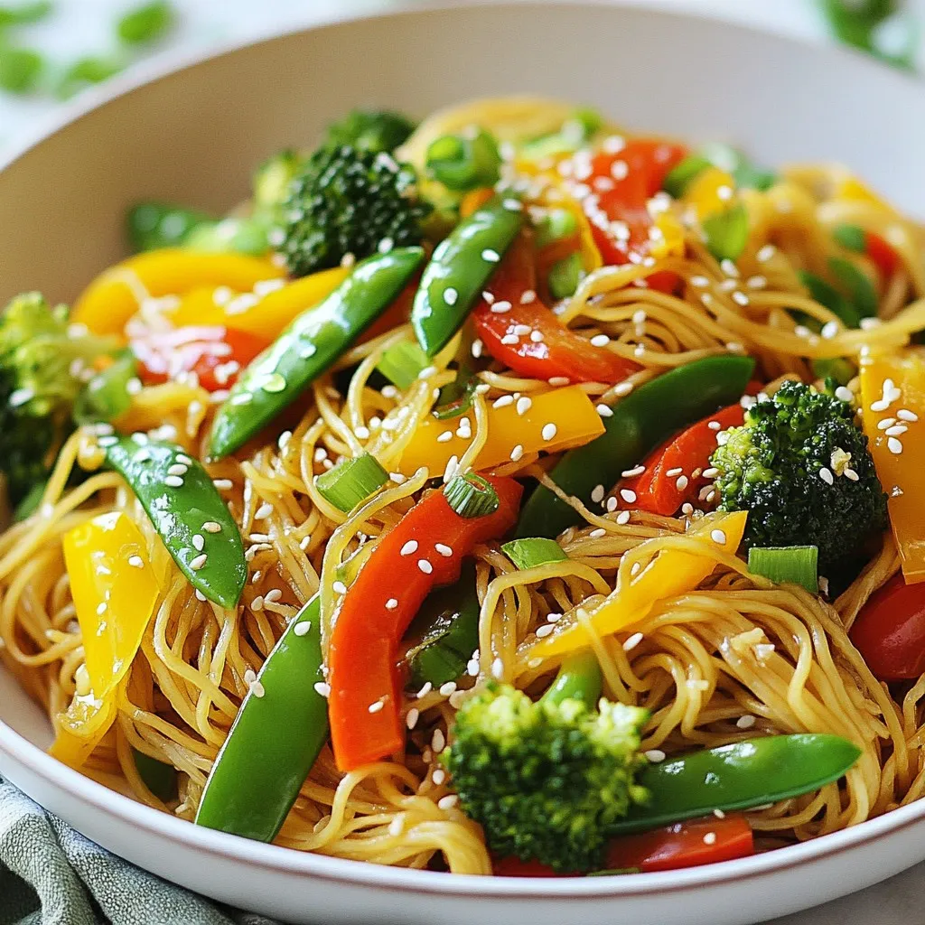 Now, let’s bring it all together! Add the cooked noodles into the skillet with the veggies. In a small bowl, mix 1/4 cup of soy sauce and 2 tablespoons of honey or maple syrup. Pour this sauce over the noodles and vegetables. Stir everything well to coat. Cook for another 2-3 minutes. This allows the noodles to soak up all those wonderful flavors. Finally, season with salt and pepper to taste. Toss in 3 chopped green onions and remove from heat. Serve warm, and don’t forget to sprinkle some sesame seeds on top for a nice crunch!