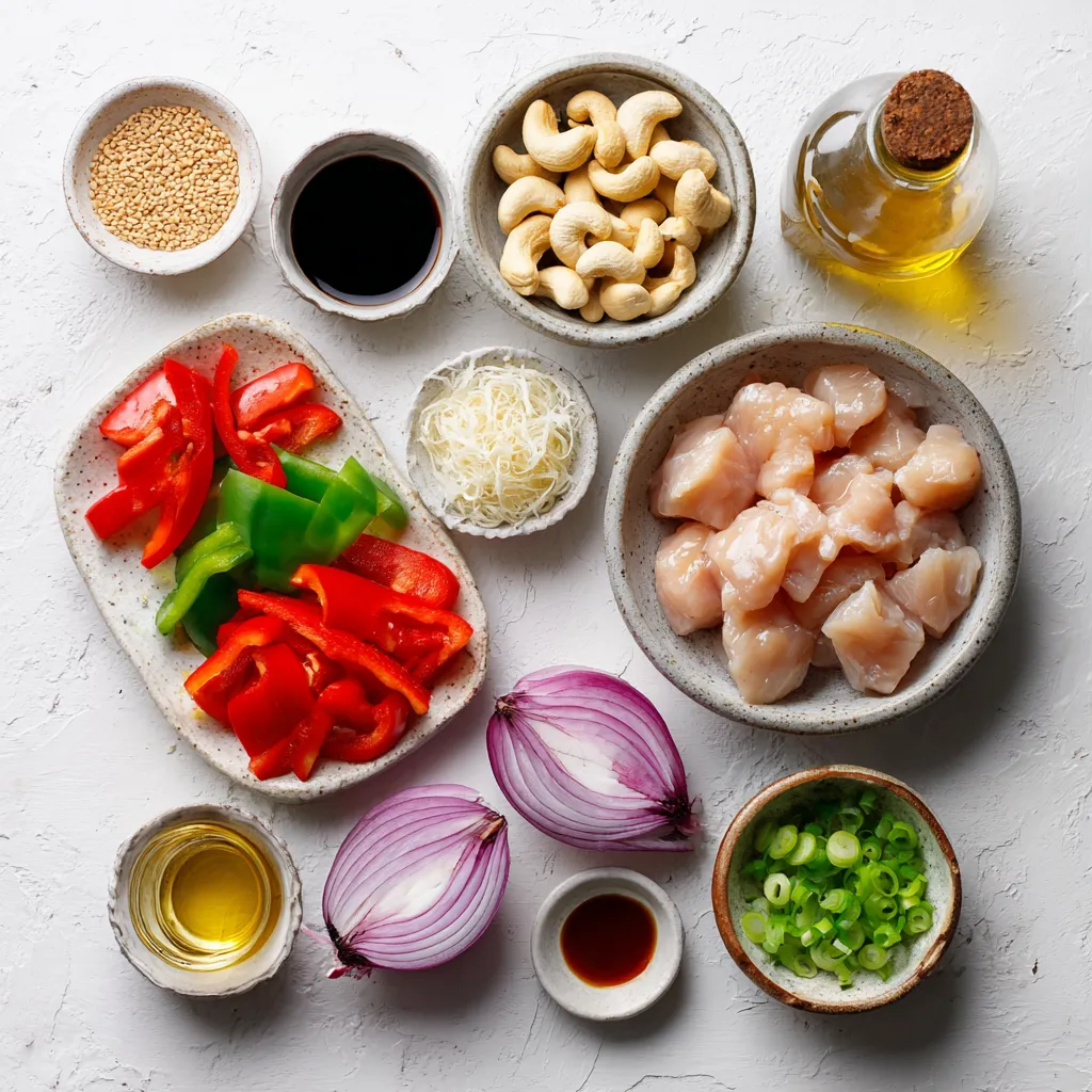 Chicken breast gives a tender bite, but you can use thighs for more flavor. Unsalted cashews add crunch without extra salt. For a twist, try peanuts or almonds. Bell peppers come in many colors; use your favorites or whatever you have. Red onion adds sweetness, but yellow or white onions work too.