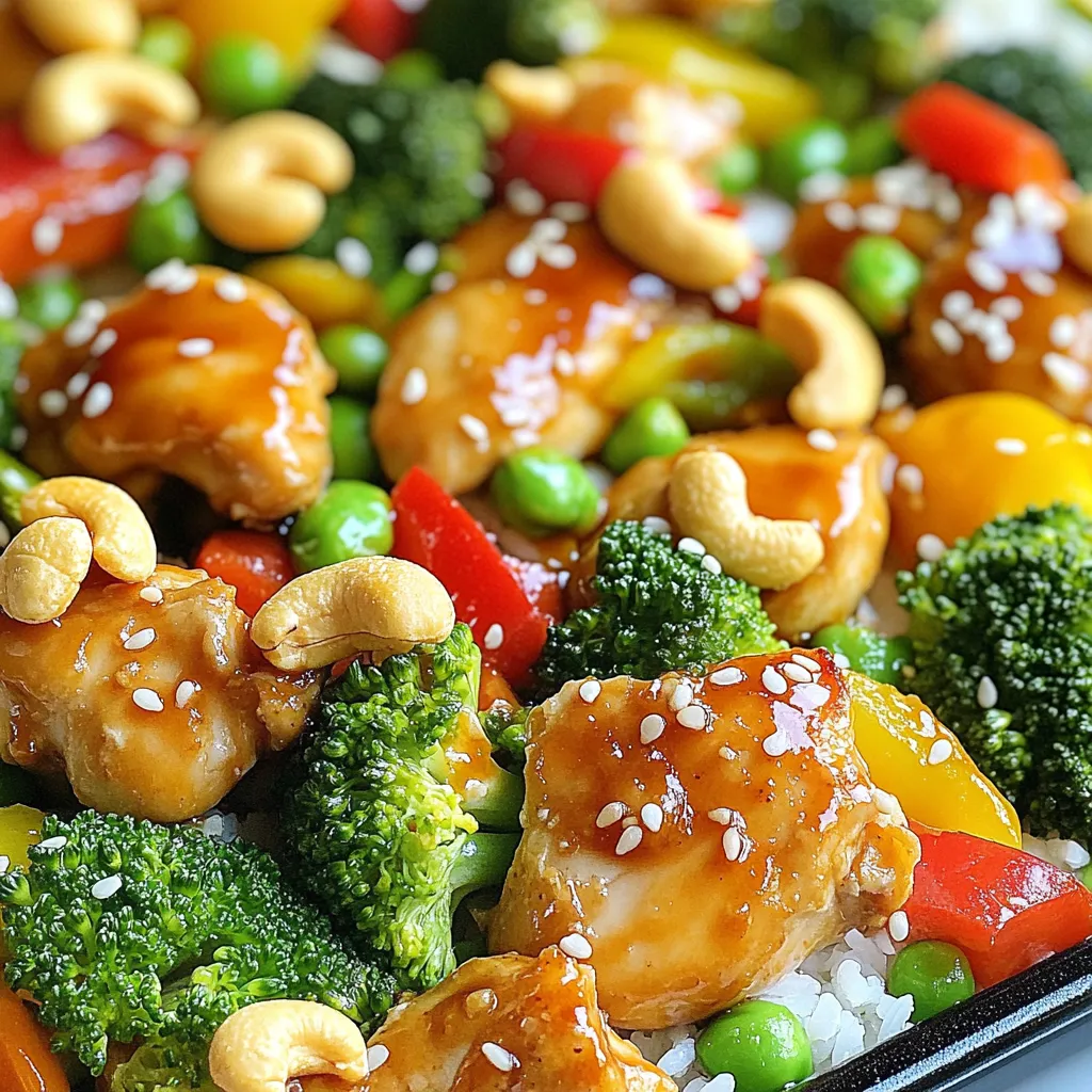 A delicious and easy one-pan meal featuring tender chicken, crunchy vegetables, and cashews, all roasted to perfection.