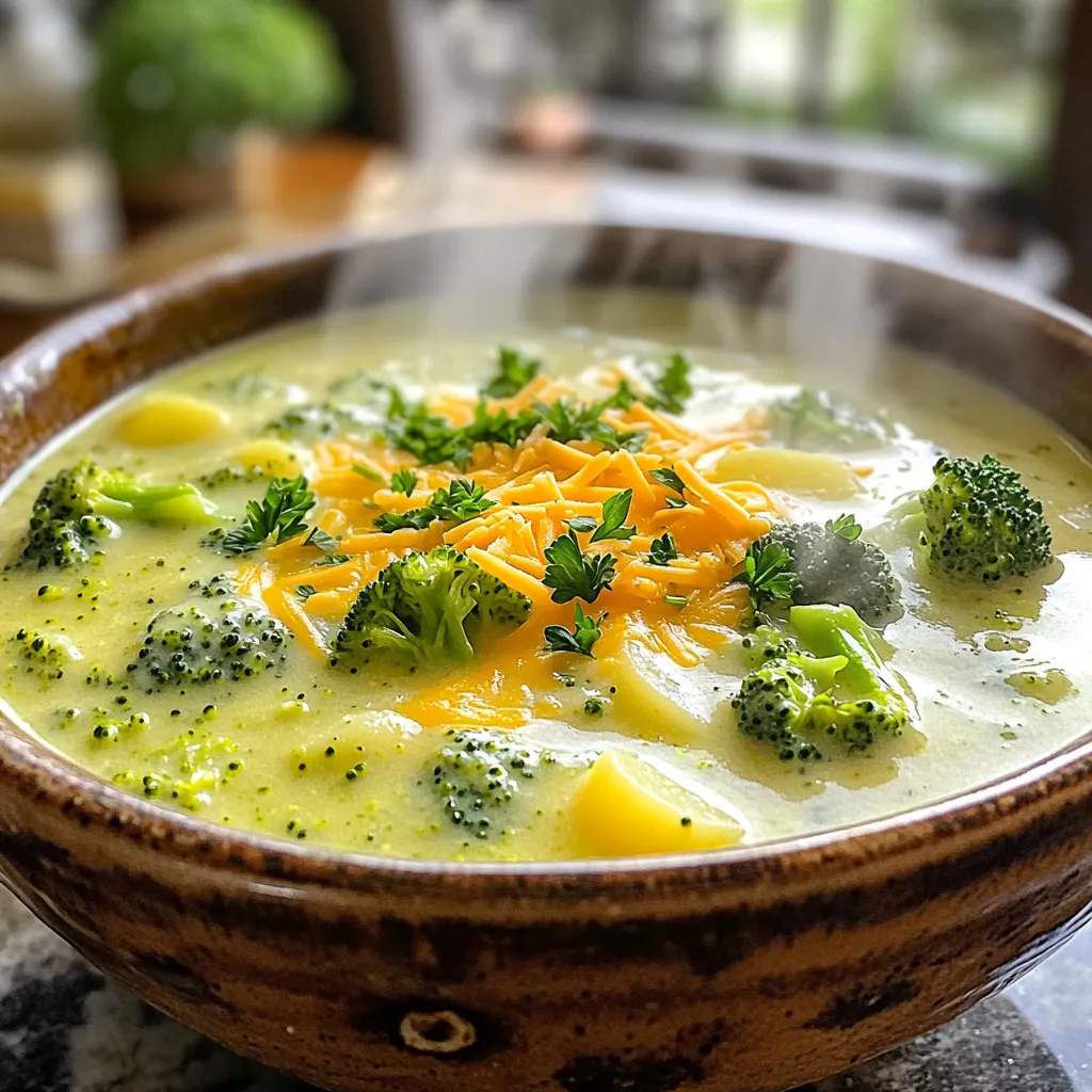 This is how you create a rich and creamy broccoli potato soup. Enjoy serving it hot!
