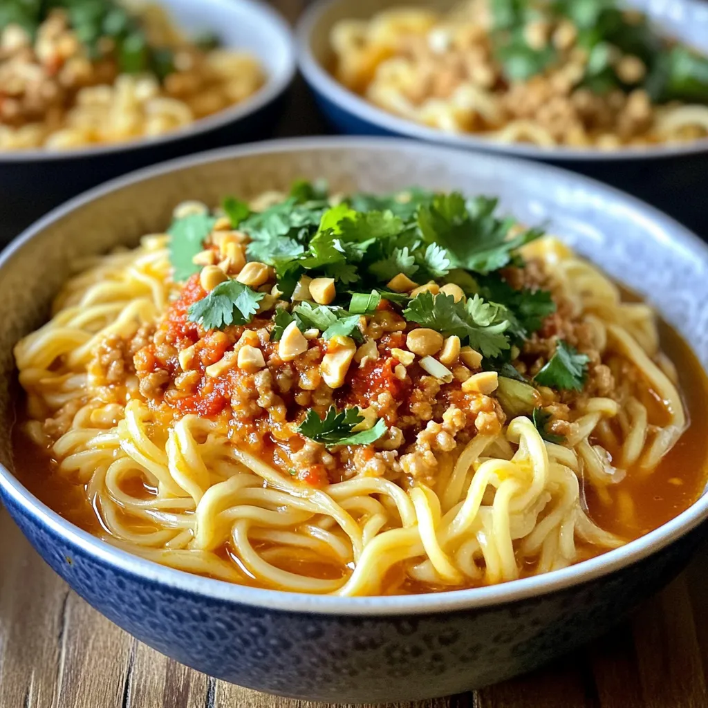 Get ready to spice up your dinner with these delicious Spicy Dan Dan Noodles! This quick and easy recipe features hearty egg noodles tossed in a rich, flavorful sauce made from ground chicken, savory spices, and creamy peanut butter. Perfect for a weeknight meal, this dish is ready in just 30 minutes. Click through to explore the full recipe and bring some heat to your kitchen tonight!