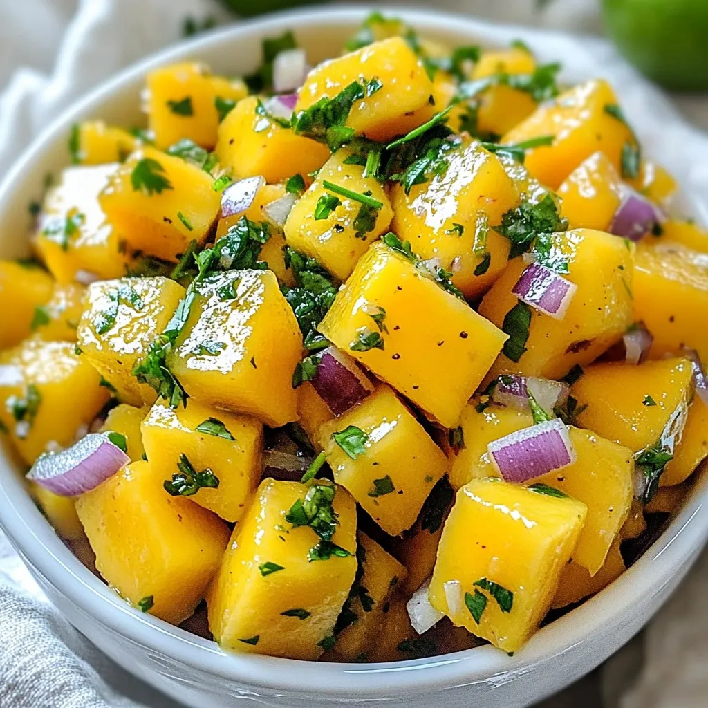 A fresh and zesty salsa made with ripe mangoes, jalapeños, and cilantro, perfect for dipping or as a topping.