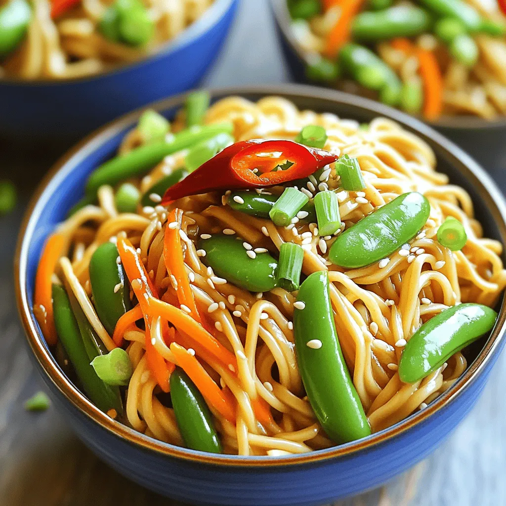 - 8 ounces soba noodles - 2 tablespoons sesame oil - 1 tablespoon vegetable oil - 1 tablespoon ginger, grated - 2 cloves garlic, minced - 1 red chili, finely chopped - 2 tablespoons soy sauce - 1 tablespoon rice vinegar - 2 teaspoons honey or maple syrup Soba noodles are the star of this dish. These thin noodles come from buckwheat, giving them a unique taste. They cook quickly, making this dish a great choice for busy days. I love how they soak up flavors from the sauce and spices. Sesame oil adds a rich, nutty flavor. It brings warmth to the dish. Vegetable oil helps cook the aromatics without burning. This combination makes a lovely base for the noodles. For a fresh kick, I use ginger and garlic. Ginger gives heat and brightness, while garlic adds depth. The red chili lets you choose your spice level. I go for one fine chop for a medium heat. If you want more spice, add more chili. The sauce components are key to making this dish shine. Soy sauce provides umami and salt. Rice vinegar adds a tangy note, balancing the flavors. Honey or maple syrup brings sweetness to the mix, rounding it all out nicely. Adjust the sauce to match your taste. - Boil 8 ounces of soba noodles in a large pot of water for 4-6 minutes. - Once cooked, drain the noodles and rinse them under cold water. This stops the cooking. - Set the noodles aside while you prepare the sauce and vegetables. - In a small bowl, mix 2 tablespoons of soy sauce, 1 tablespoon of rice vinegar, and 2 teaspoons of honey or maple syrup. - Add 2 tablespoons of sesame oil to the mix. - Taste the sauce and adjust it. Add more honey for sweetness or soy sauce for saltiness. - Heat 1 tablespoon of vegetable oil in a large skillet over medium heat. - Add 1 tablespoon of grated ginger, 2 cloves of minced garlic, and 1 finely chopped red chili. - Sauté for 1-2 minutes. Watch the garlic closely so it does not burn. - Toss in 1 cup of trimmed snap peas and 1 cup of julienned carrots. - Stir-fry the vegetables for 3-4 minutes until they are tender-crisp. - Add the cooked soba noodles to the skillet with the sautéed vegetables. - Pour in the sauce and toss everything together. Heat it through for 2-3 minutes. - Remove the skillet from heat and fold in 2 sliced green onions. - Garnish with 2 tablespoons of sesame seeds for a nice finish. - Tweaking spice levels: You can change the heat by adding more or less red chili. If you want it milder, remove the seeds or use less chili. For more spice, add chili flakes or fresh slices on top. - Options for added sweetness: Use more honey or maple syrup in the sauce to balance the heat. You can also try adding a splash of orange juice for a fruity sweetness. - Best practices for noodles: Always cook your soba noodles in boiling water. Follow the package instructions carefully. After cooking, rinse them in cold water to stop the cooking and keep them firm. - Sautéing tips for vegetables: Use medium heat to sauté. This helps keep the vegetables bright and crisp. Stir often to prevent burning and to cook evenly. - Serving in bowls: Serve the noodles in deep bowls. This makes it easy to mix and enjoy. - Garnishing ideas: Top with extra sesame seeds and sliced green onions for color and crunch. For more flair, add a few slices of chili for a spicy look. {{image_2}} Adding protein to your spicy sesame soba noodles can make them heartier. Here are two great options: - Tofu options: Use firm or extra-firm tofu. Cut it into cubes, then pan-fry until golden. Add it in with the vegetables for a nice, crispy texture. - Chicken or shrimp variations: For a meatier dish, add chicken or shrimp. Cook them in the pan before adding the vegetables. This adds flavor and protein to your meal. You can swap out vegetables based on what you have or like. Here are some ideas: - Alternative vegetables: Bell peppers, broccoli, or mushrooms all work well. Chop them small, so they cook quickly. - Seasonal options: Use what's fresh in your area. In spring, add asparagus. In summer, try zucchini or corn. These choices keep your dish exciting and fresh. If you need gluten-free options, you can easily adapt this recipe. Here’s how: - Using gluten-free noodles: Look for gluten-free soba noodles made from buckwheat or rice. Cook them just like regular soba noodles. - Adapting the recipe for dietary needs: Check your sauces. Some soy sauces have gluten. Choose tamari or coconut aminos instead for a gluten-free flavor. These variations let you customize your spicy sesame soba noodles to fit your taste and needs! Store leftover spicy sesame soba noodles in the fridge. Let them cool first. Use airtight containers to keep them fresh. Glass or plastic containers work well. They can last up to four days. You can reheat noodles in a few ways. The microwave is quick and easy. Just add a splash of water to keep them moist. Heat in short bursts, stirring often. You can also use a skillet. Warm over low heat and add a bit of oil. This helps keep the noodles flavorful and prevents sticking. If you want to freeze, keep noodles and sauce separate. Place them in freezer-safe bags or containers. They can last up to three months in the freezer. To thaw, move them to the fridge overnight. For reheating, use the microwave or skillet as before. Enjoy your tasty noodles later! Soba noodles are made from buckwheat flour and water. They can also contain wheat flour, but pure soba noodles are gluten-free. Buckwheat gives them a nutty flavor and a unique texture. These noodles are popular in Japanese cuisine and are often served cold or hot. To change the spice in your soba noodles, you can add or reduce the red chili. If you want less heat, use fewer chili pieces. For more spice, add extra chopped chili or some chili paste. You can also add a splash of hot sauce to your sauce mix for extra kick. Yes, you can easily make these noodles vegan. Swap honey with maple syrup or agave syrup. Ensure that the soy sauce you use is vegan. You can add tofu for protein or more 
