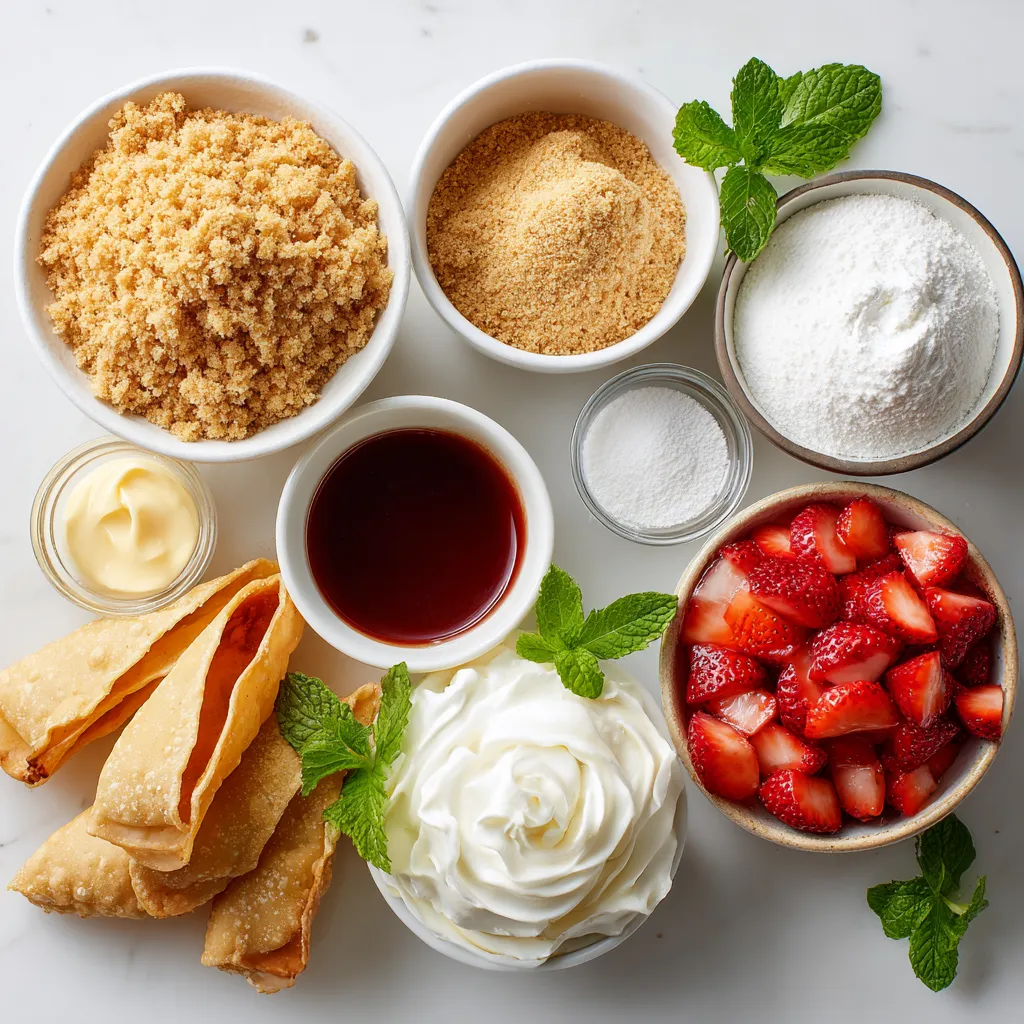 For graham cracker crumbs, I love using Nabisco. Their flavor is classic and sweet. For cream cheese, Philadelphia is a trusted brand that works well. If you want rich whipped cream, try Land O’Lakes. For strawberry sauce, Smucker’s is a great store-bought option. You can also make your own sauce by blending fresh strawberries with a bit of sugar.